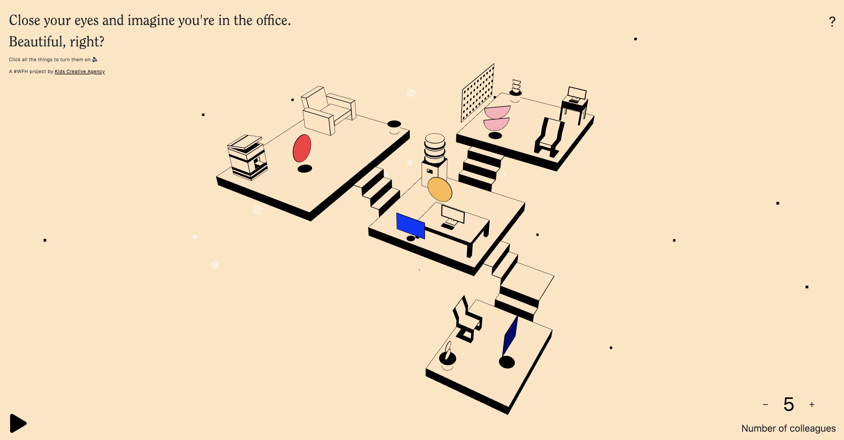 Fortunately, Kids Creative Agency created a website called imisstheoffice.eu which replicates the sounds of being in the office, without actually being back there. The also not only generates very realistic in-office sounds, but you can tweak little details of what sounds you prefer by clicking on very adorable moving graphics.