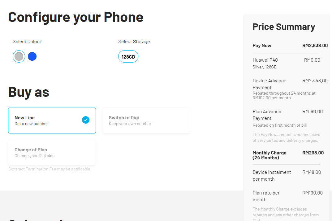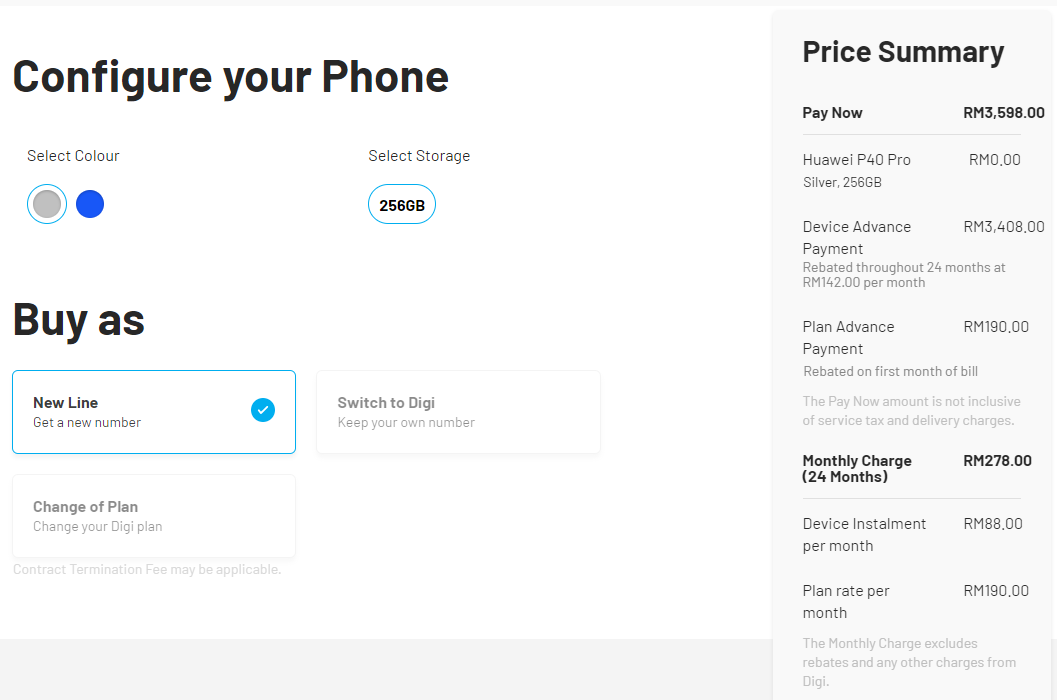 Below is the all-in monthly instalment for the P40 Pro on Digi excluding taxes on a 24-month contract: