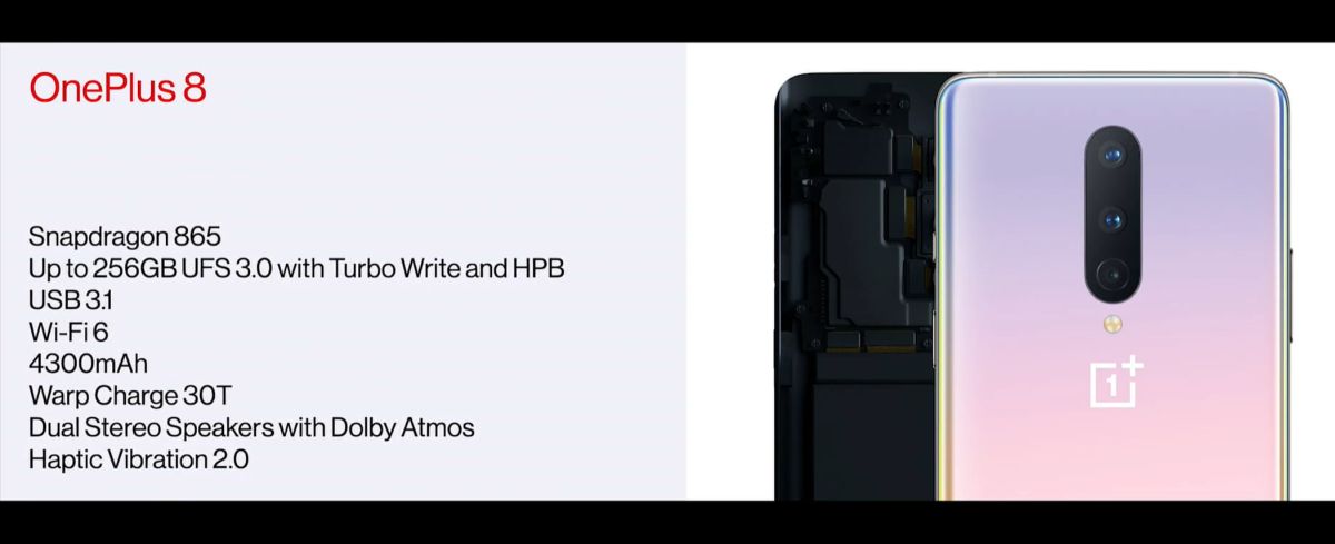 It’s powered by the Snapdragon 865, while there are options of up to 256GB of UFS 3.0 storage and up to 12GB of LPDDR4X RAM. Just like the OnePlus 8 Pro, the more affordable variant in the series also gets 5G support via the X55 chip.