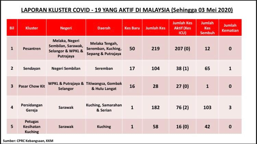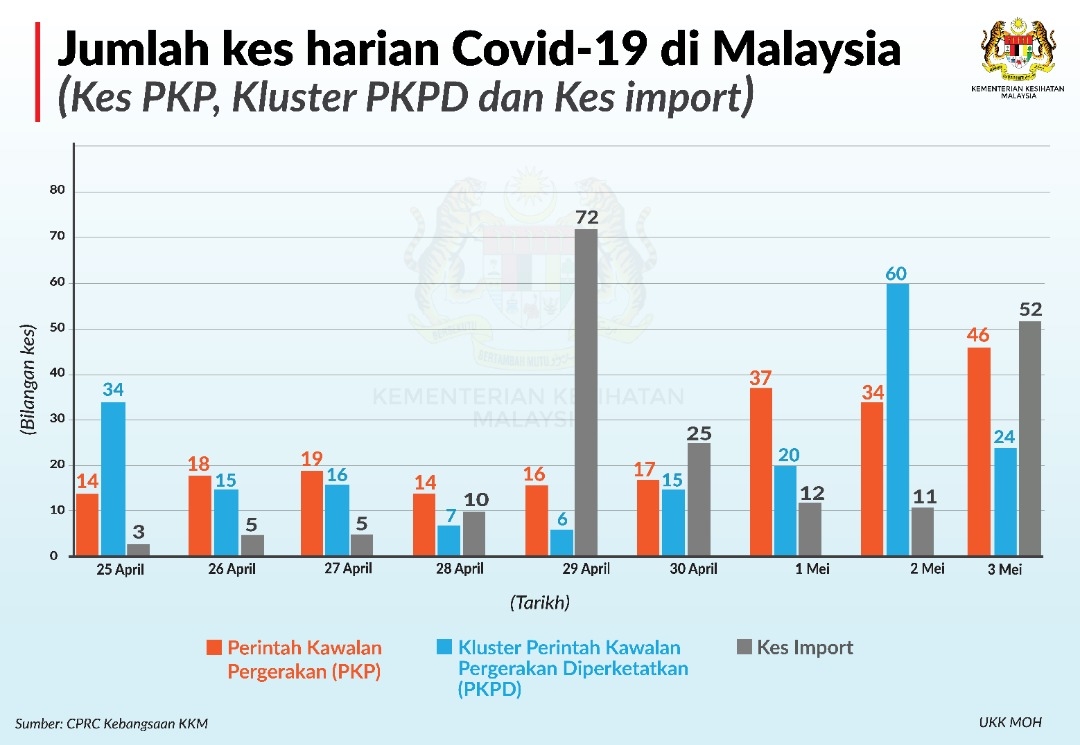 Health director-general Dr Noor Hisham Abdullah has reminded all Malaysians that CMCO which would allow selected businesses to reopen starting 4th May is not an indication that the MCO is lifted. He said that CMCO is meant to ease COVID-19 restrictions but with strict enforcement of social distancing. Those that do not comply with the directives will be subjected to punishment. He said those who are not convinced that the SOP will be followed, must remain at home.