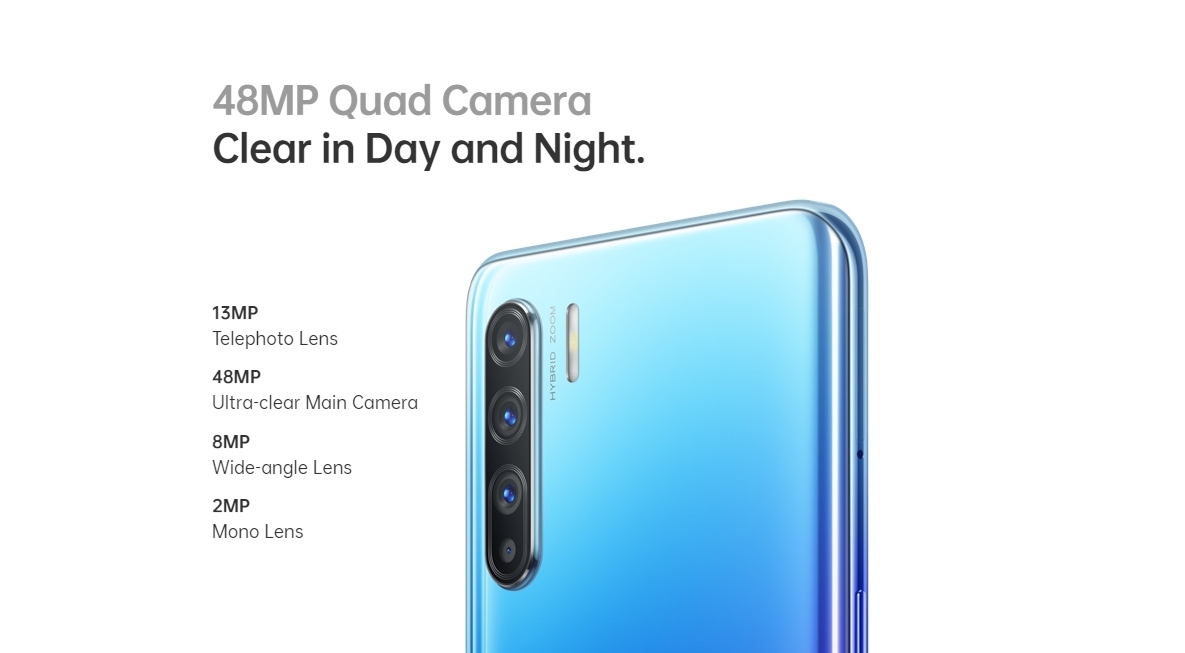 The Oppo Reno 3 comes with a 6.4″ Full HD+ AMOLED display that comes with a tiny notch and an in-display fingerprint sensor. Under the hood, it runs on a MediaTek Helio P90 processor with 8GB of RAM. Onboard, it has 128GB of storage which is expandable via microSD card.