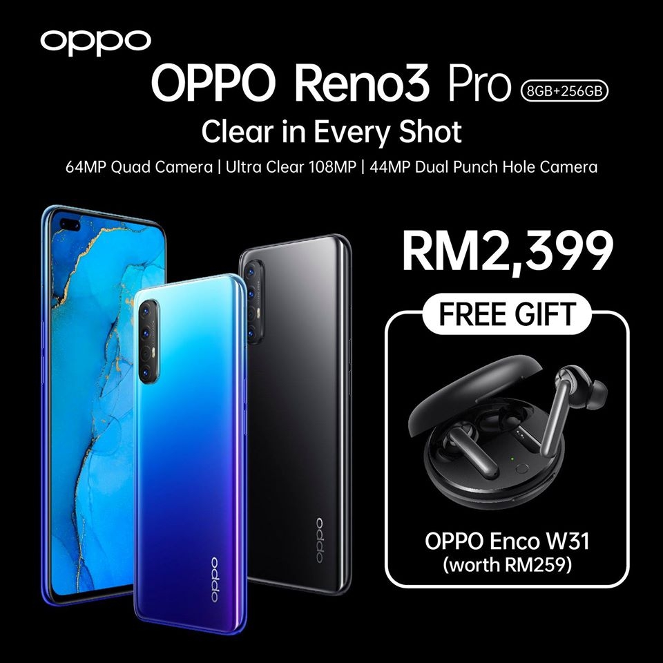 Below is the official price for the Oppo Reno 3 and Reno 3 Pro in Malaysia: