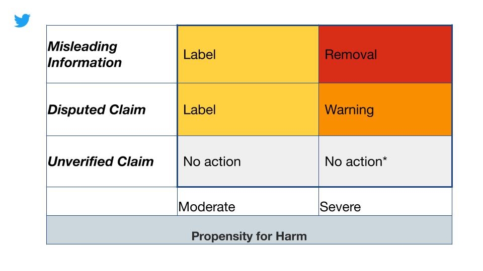 Twitter has previously announced that they require users to remove tweets making unverified claims that could “incite people to action and cause widespread panic, social unrest or large-scale disorder.” This was because of tweets that were spread inciting people to damage 5G infrastructure, due to false conspiracy theories about links between 5G technology and COVID-19 on their site.