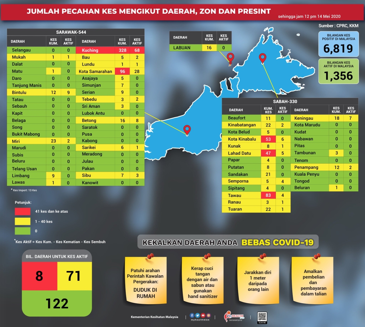 The ministry has shared that a total of 424,306 individuals have been tested as of 15th May with 6,855 found positive and 417,451 returned negative. The positive rate is currently at 1.62% and 13 out of 1,000 people have been tested in Malaysia. It also added that Malaysia has conducted the most COVID-19 tests among ASEAN countries. The tests are targetted at high-risk groups.