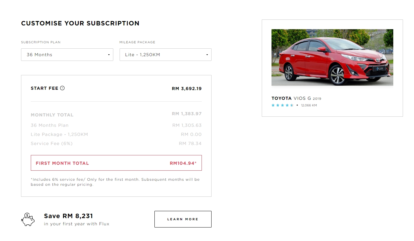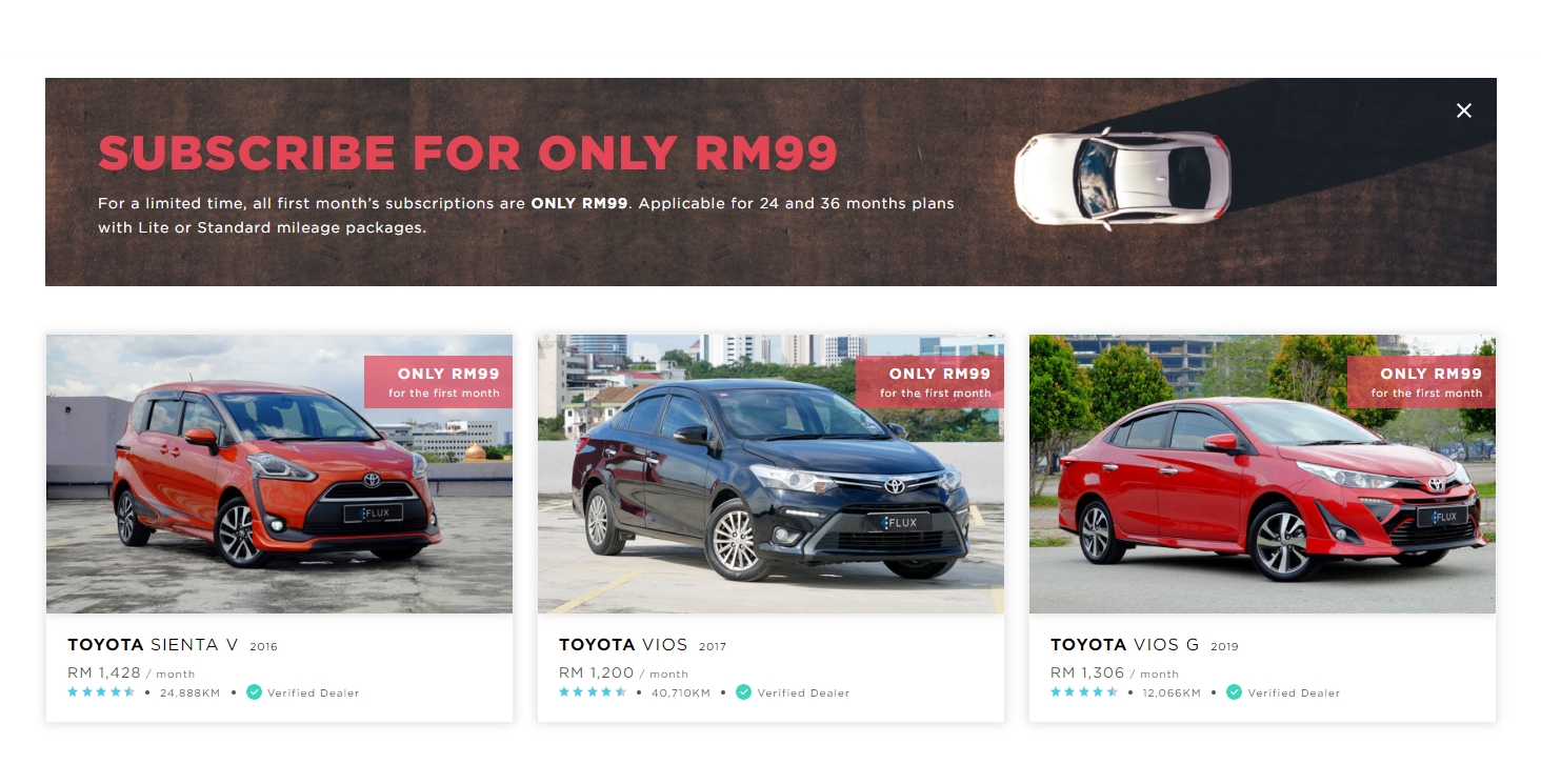 Flux’s current fleet is pretty extensive as it covers sedans, hatchbacks, SUVs, MPVs and even pickup trucks. Just recently, they have introduced a “Subscribe to own” option where subscribers can choose to buy the car after the contract is over. According to Flux, customers will pay 33% less in the first year compared to typical car ownership as the upfront cost is significantly lower since it doesn’t require a 10% deposit.