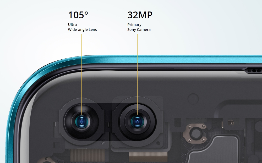 The new device features a 6.6″ Full HD+ LCD display that boasts a 90.5% screen to body ratio and an “Ultra Smooth” 120Hz refresh rate. The screen has a dual-punch-hole-selfie camera on the top left corner that consists of a 32MP f/2.5 main camera (Sony IMX616) and a secondary 8MP f/2.2 ultra-wide-angle lens.