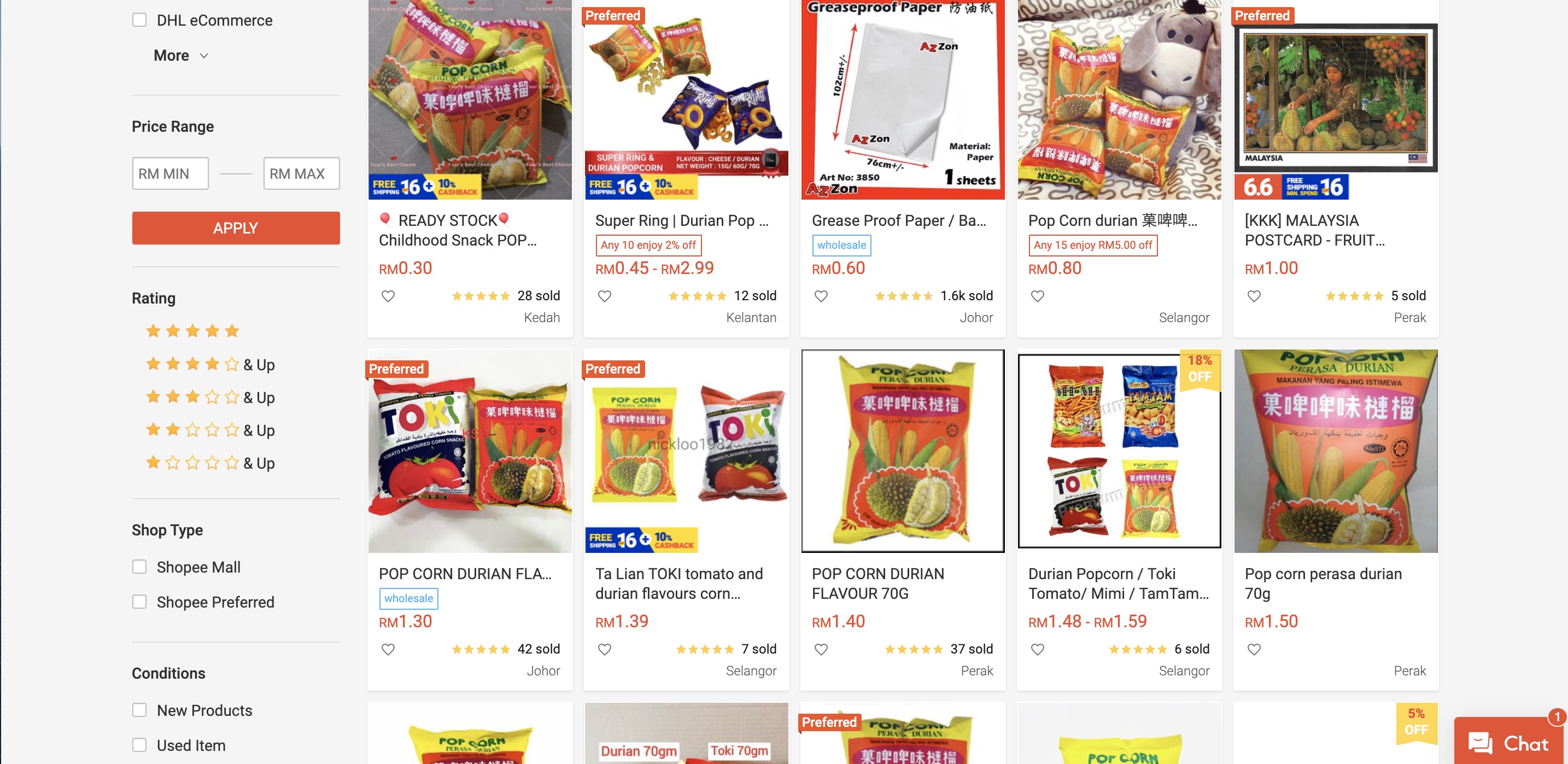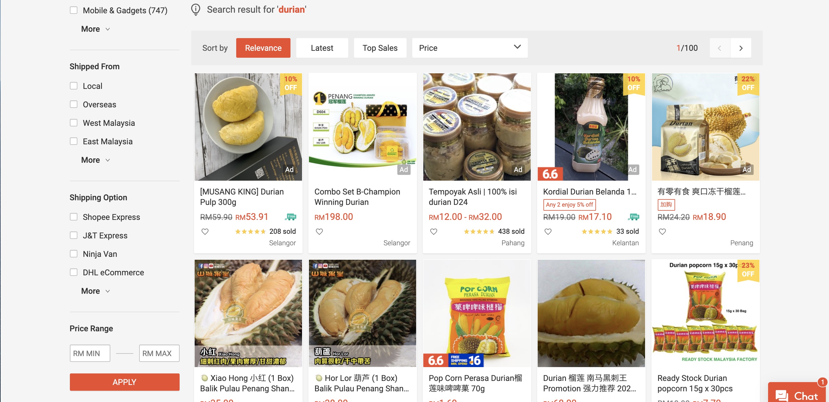 I tried looking up “durian” in Shopee and there wasn’t any super cheap ones. However, they did have some deals like 300g Musang King for RM54, and Black Thorn for as low as RM30. The RM0.66 might be expected later throughout the sale period.