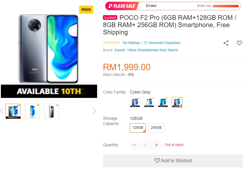 [ UPDATE 10/06/2020 12:34 ]: It appears to be another new batch of Poco F2 Pro 128GB that’s going for RM1,999 on Lazada. All colours are still available. If you’re still interested, you better be quick.