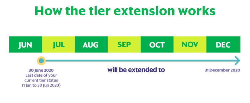However, it added that the qualifying period between 1st July 2020 to 31st December 2020 will determine your tier status for the first half of 2020.
