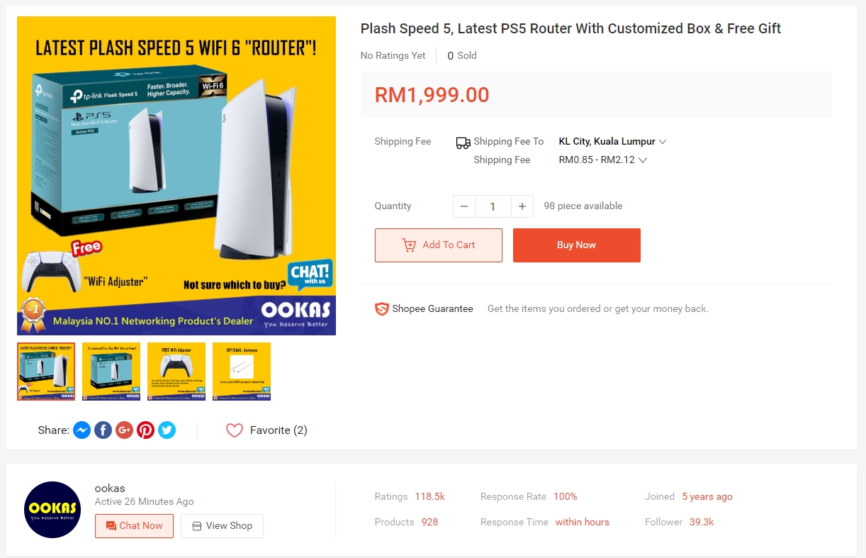 If you’re looking for the latest “Plash Speed” model, local retailer Ookas has listed the “Plash Speed 5” on Shopee. Priced at RM1,999, it comes in a customised box with TP-Link branding and a free WiFi adjuster which so happens to look like a PS5 controller. To make the Plash Speed 5 look more convincing, they are offering optional antennas as well.