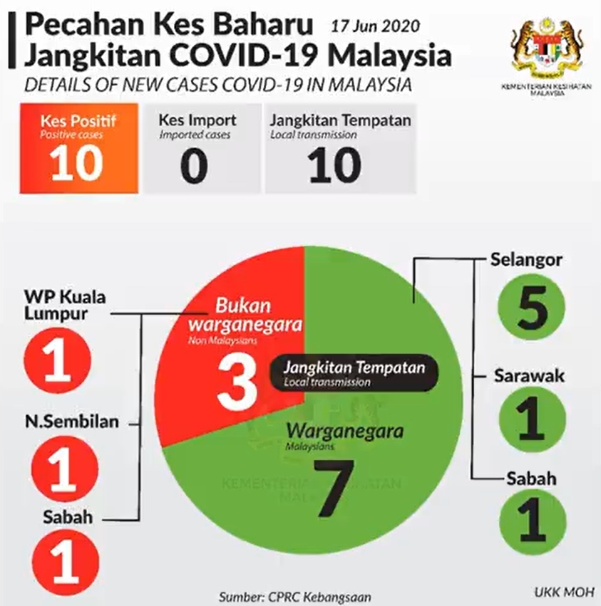 The ministry has updated that there are no imported cases today. All 10 new cases are transmitted locally which consists of 3 foreigners and 7 Malaysians.
