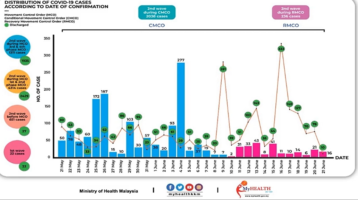 At the moment, the states and territories of Pulau Pinang, Perlis, Kedah, Kelantan, Terengganu, Putrajaya and Labuan are fully green. Meanwhile, Rembau is the only red-zone with 44 active cases due to the Pedas active cluster.