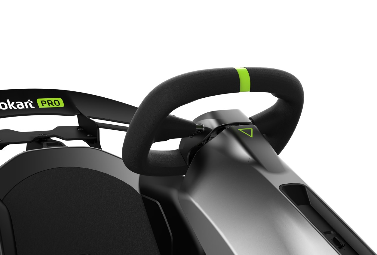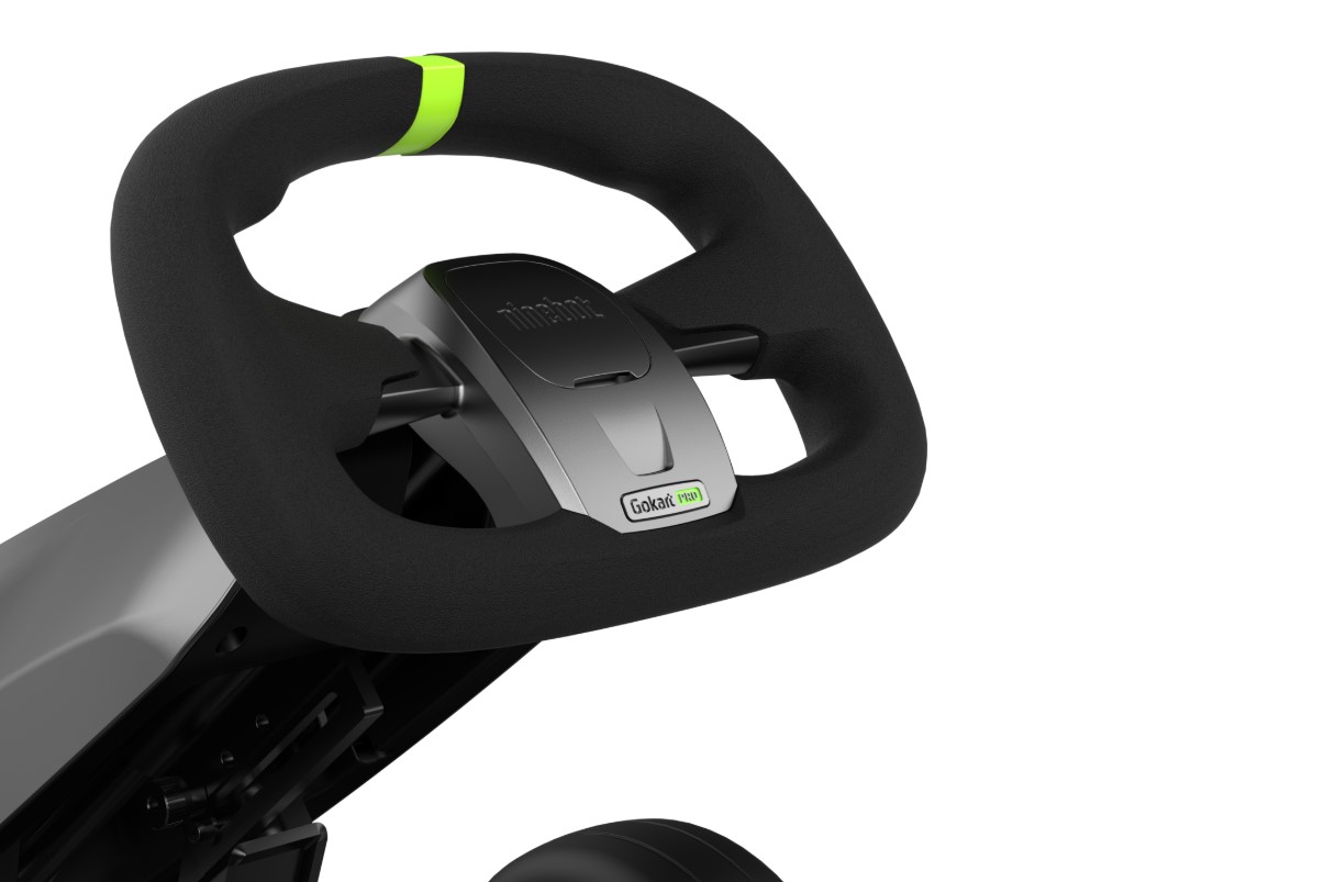 The new Gokart Pro is a true upgrade over the original, offering an improved design, faster top speed, longer driving range and enhanced safety features. Though the Gokart Pro looks similar to the Gokart kit, the gunmetal grey design and green accents make it look like a serious racing machine.
