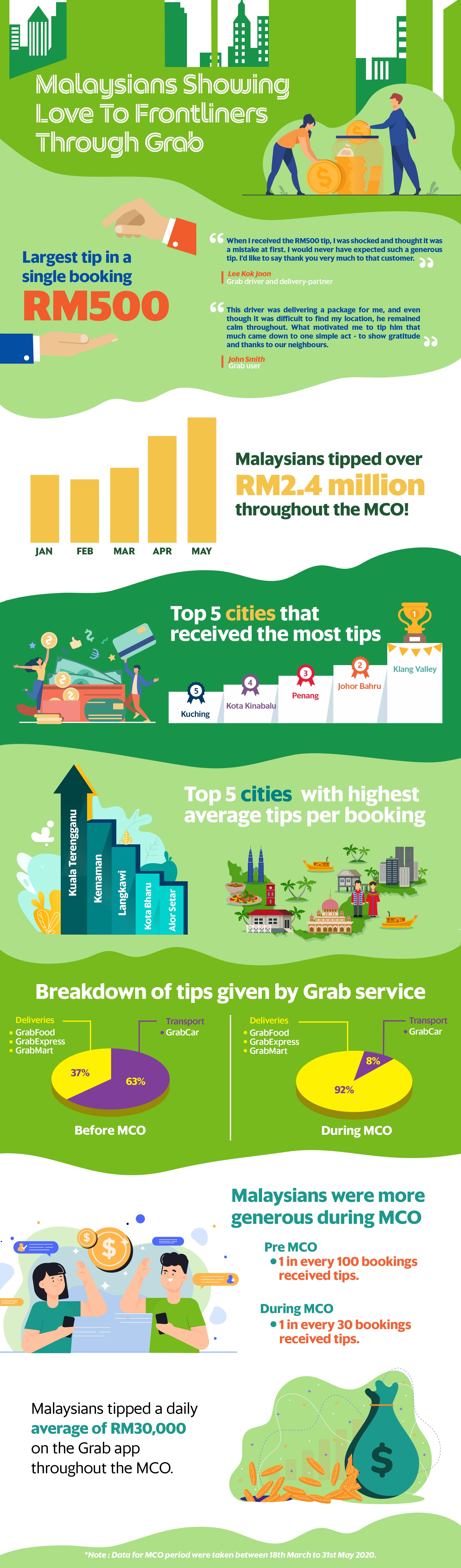 Smith’s generosity was by far the biggest tip by a Malaysian. But Grab users in general have contributed over RM2.4 million in tips throughout the MCO (18th March – 31st May).
