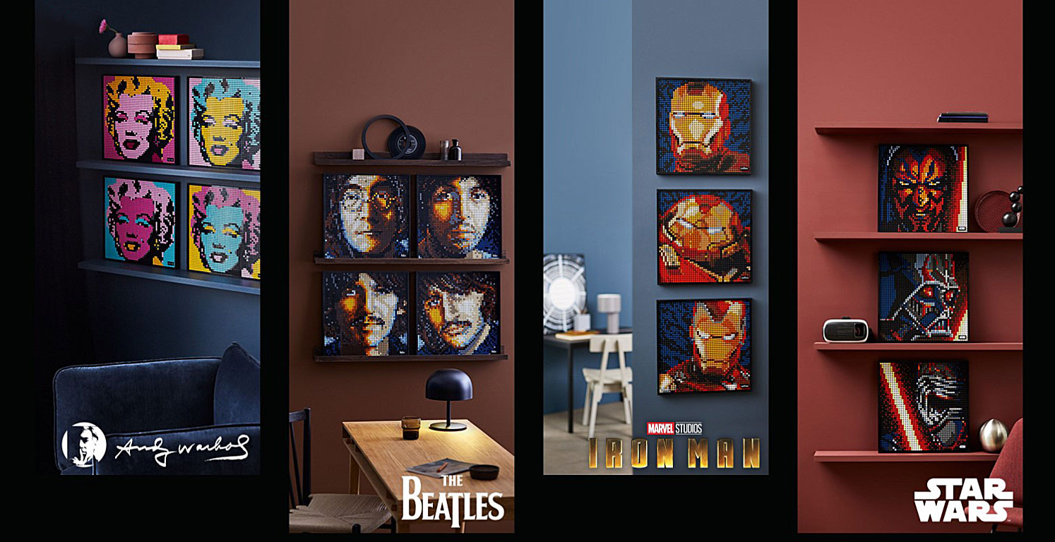 There are four sets to choose from including Andy Warhol’s Marilyn Monroe, there are also portraits of The Beatles, the villains from Star Wars and Marvel Studios’ Iron Man in various versions of his suit.