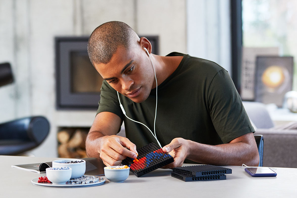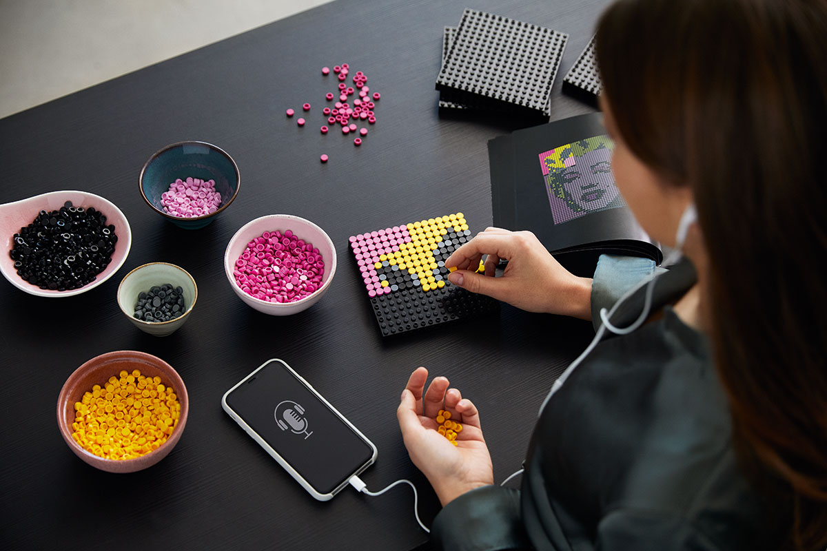 Made specifically for adult builders, each set comes with a 15.5” (40cm) square canvas and thousands of small bead-sized pieces that you piece together to form a pop art poster.