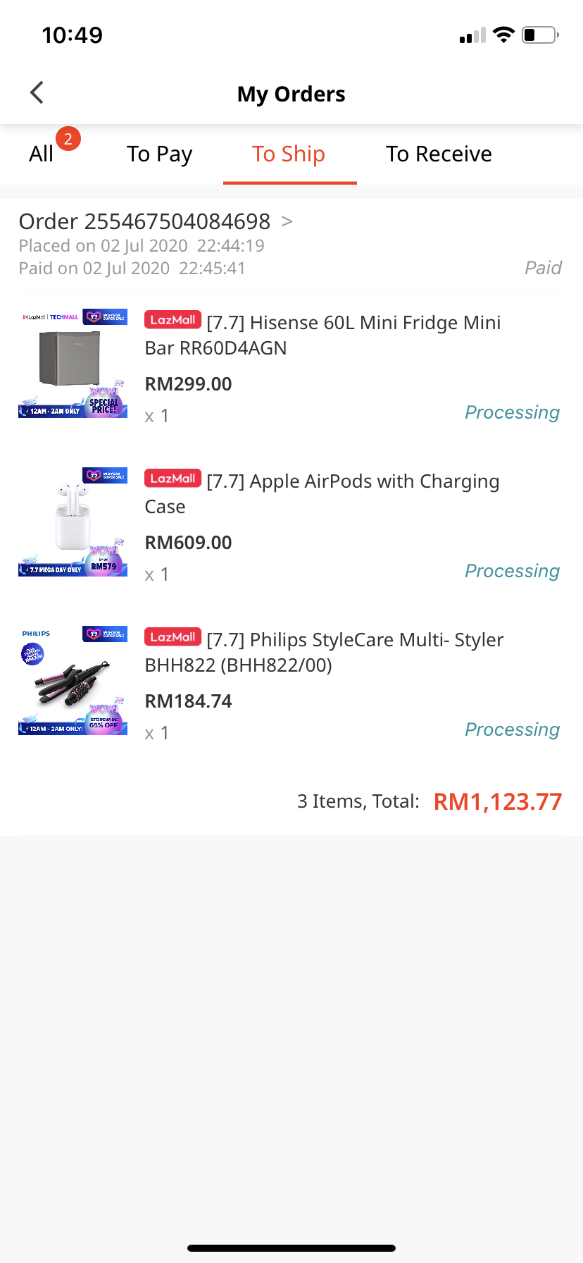 I assume that if you want to keep the option open to pay for your item to be delivered the next day, you might want to order them in separate packages rather than all in one cart. It’s a bit cumbersome, but if you don’t mind not having 1 day delivery you can still receive LazMall items in 2 days if that’s the other alternative.