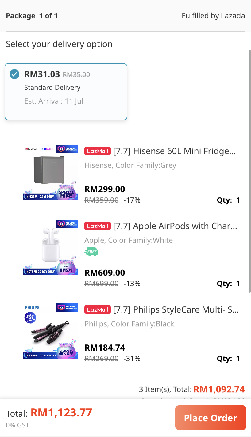 Lazada also noted that these promises are only available for people within the Klang Valley, however it will be expanded to West Malaysia starting from 7th July. I tried my hand at ordering a few items of LazMall in time to show you what to expect when you do shop for your own stuff during the 7.7 sale.