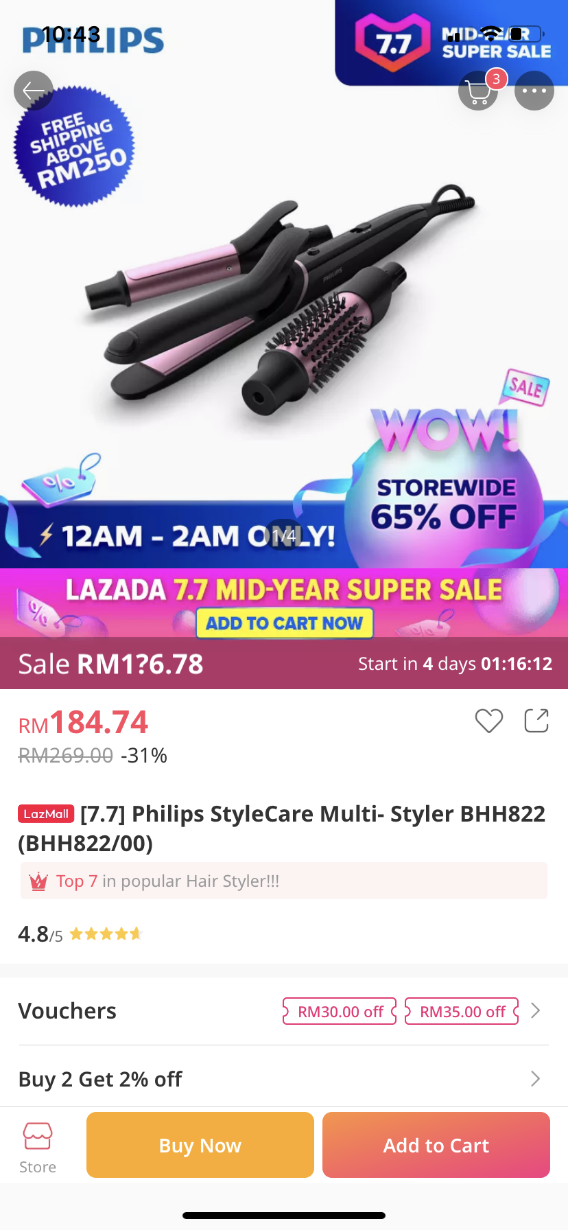 I found that that if you add in several items in a cart, you don’t really get to choose the choice of delivery options as it will be considered one order. Both the Multi-Styler and the Airpods offer both the “Express Delivery Next Day” option and the “Standard Delivery (2 Days)” option.