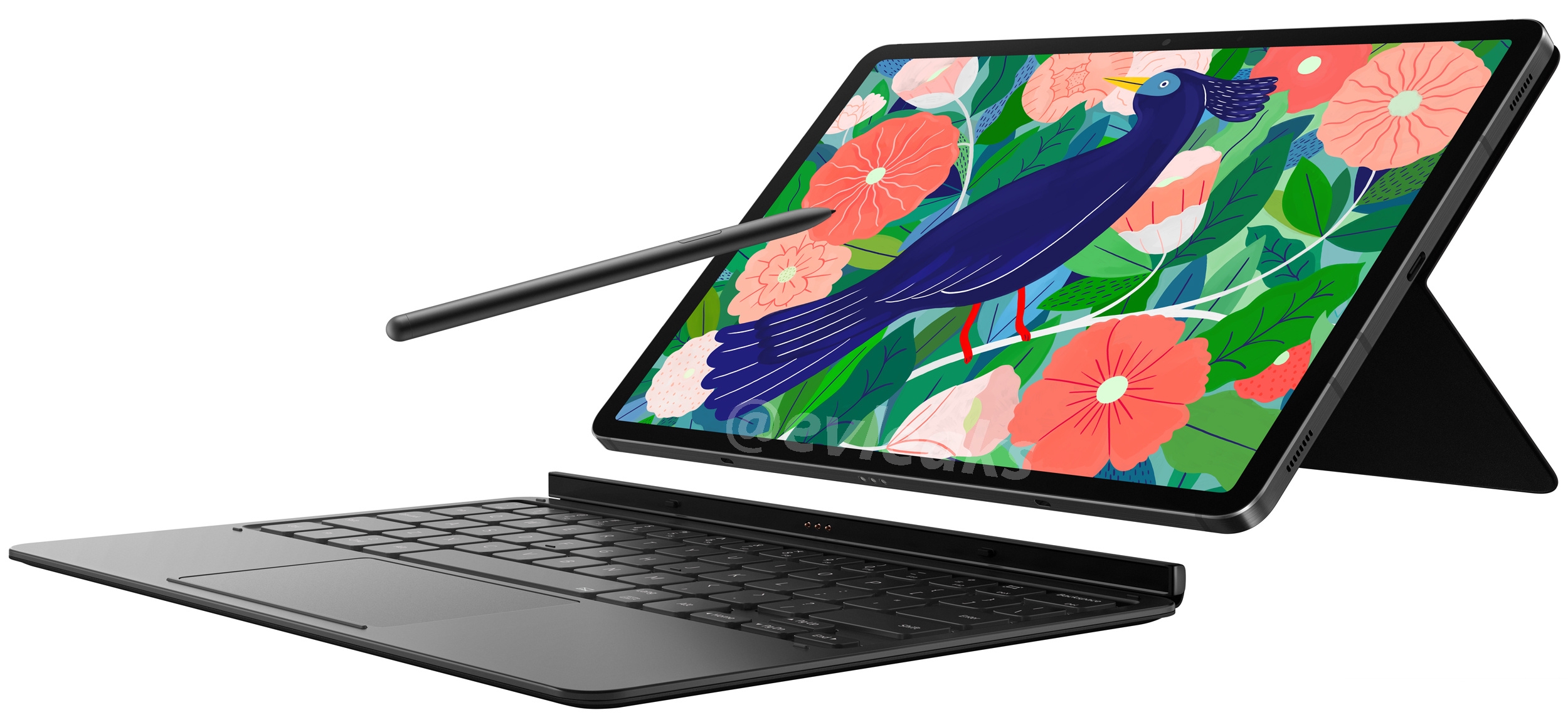 From what we can see, the Galaxy Tab S7 has a new keyboard that still connects via Pogo connectors. The overall exterior with its dark grey finish gives it an industrial look which is somewhat similar to the current generation iPad Pro.