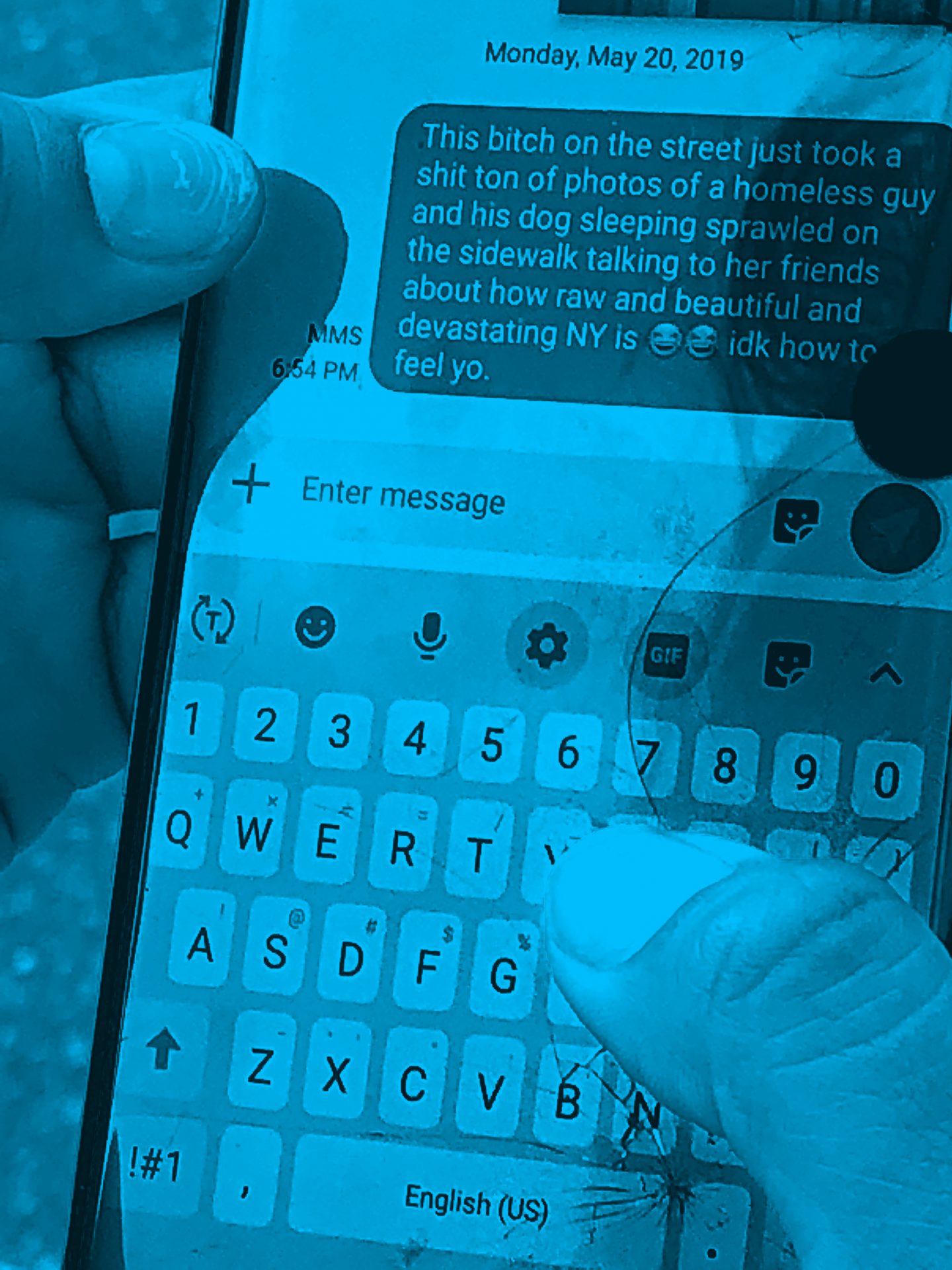 Mermelstein has collected more than 1,200 photos of texts since beginning the project in 2018. For “#nyc”, it features over 150 of them, and printed on blue paper that mimics the backlit glow of a screen.