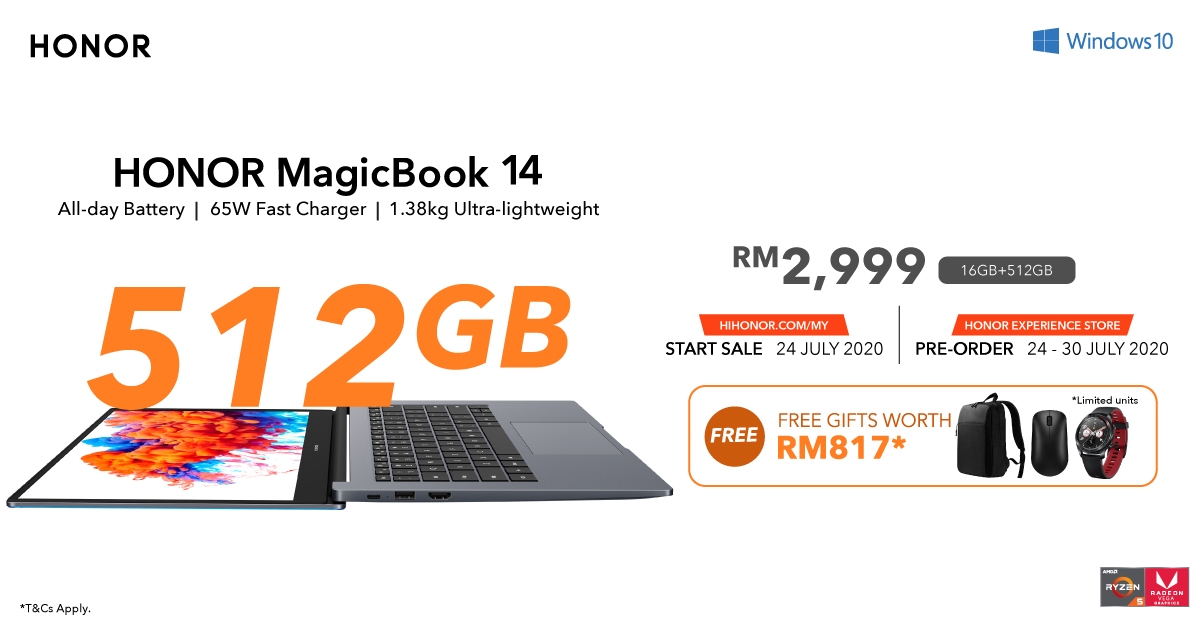 If you’re interested, you can purchase it from HiHonor.com on the 24th of July or pre-order at your nearest Honor Experience Stores from the 24th to 30th July 2020. Buyers will get an Honor Magic Watch, Honor Backpack and an Honor Bluetooth mouse for free.
