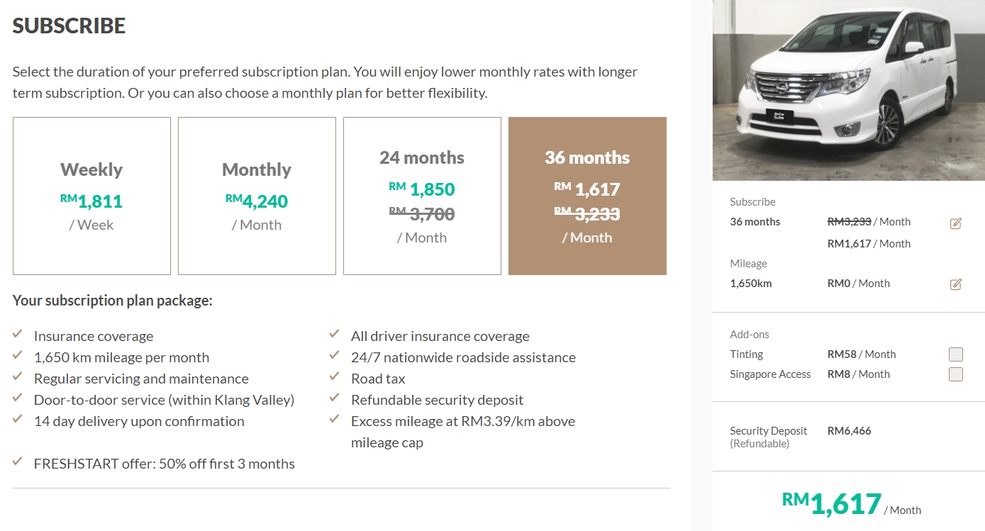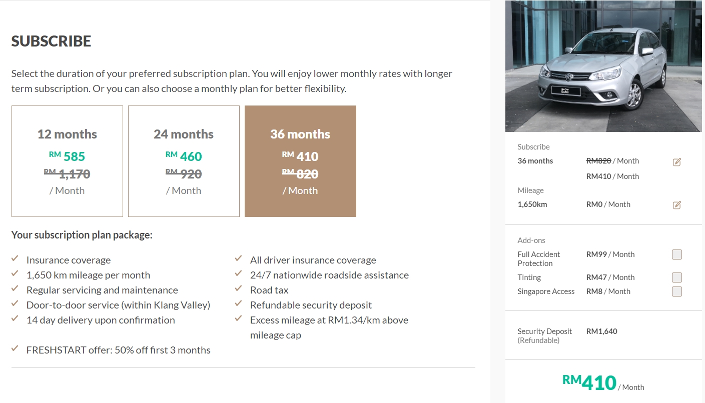 At the moment, GoCar Subs are running a promo for its 12-month, 24-month and 36-month subscription plans where you can get 50% off for the first three months of the subscription.