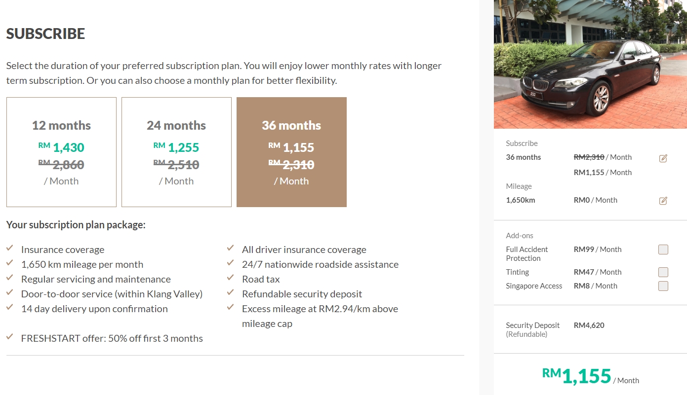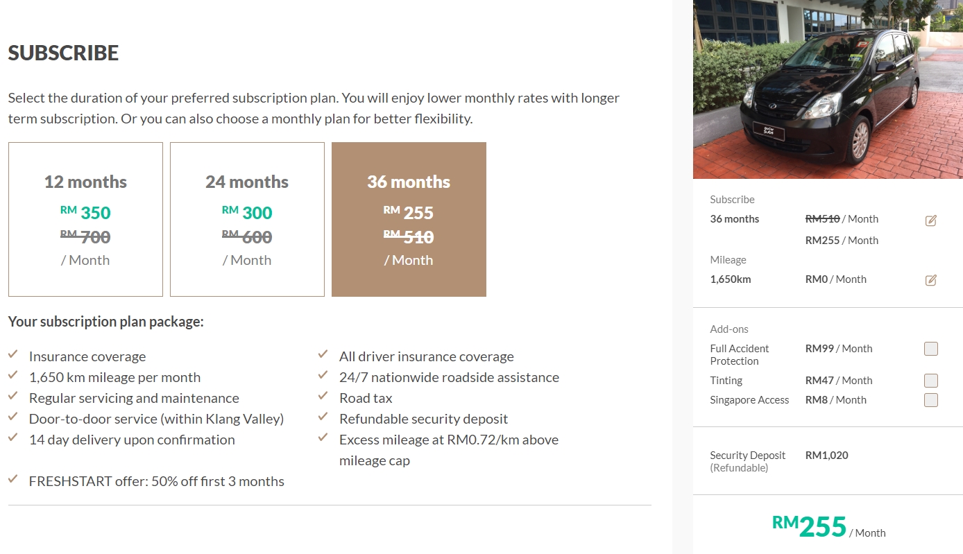 To subscribe a car, the process is more tedious than Flux as you would need to submit a copy of documents including your IC, driver’s license, 3 months pay slip, 3 months bank statement and your EPF statement. For non-Malaysians, you would need to provide more documentations including utility bill of your local residence, rental agreement and your letter of employment.