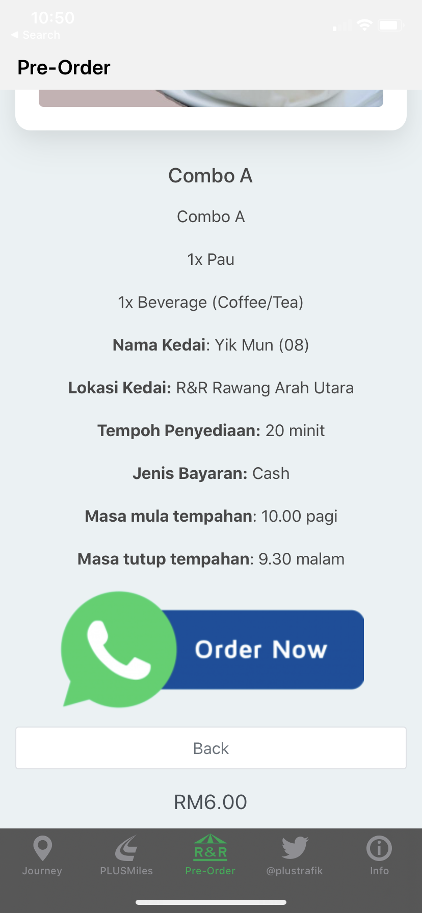 You can choose your chosen rest stop first, and then pick the food you want to order and click through for more info. You’ll be given more information including the time it takes for them to get the order ready for you, the name of the stall, how to pay, and how to order.