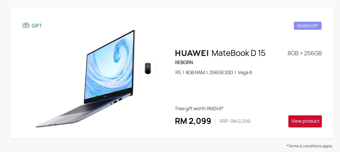 If you’re looking for an affordable laptop, the Huawei MateBook D 15 with a AMD Ryzen 5, 8GB RAM and 256GB SSD is going for RM2,099 instead of RM2,299 on 8.8. Take note that this is the cheaper variant that lacks the extra 1TB HDD.