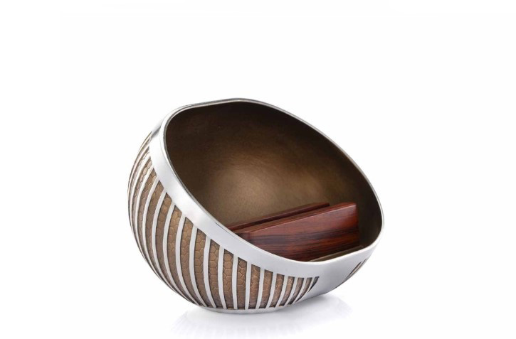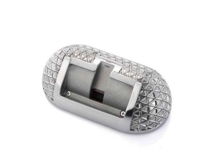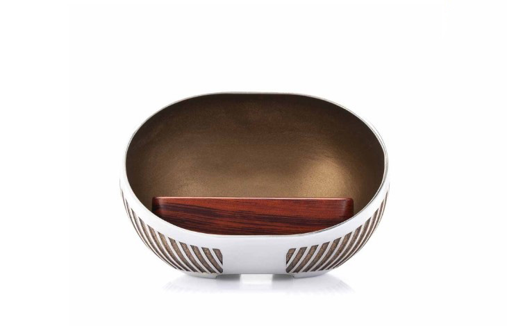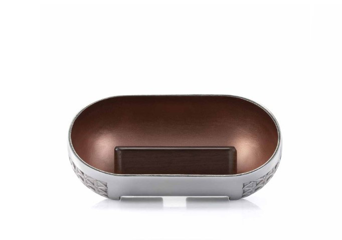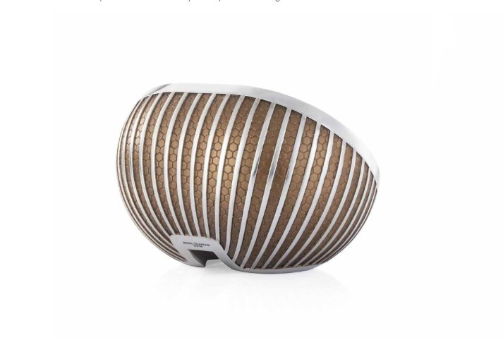 There is also a medium-sized variant takes on a Brutalist style combining pewter and copper. Finally, there is a large variant that features a sunburst motif in pewter, complimented by a bronze accent finish.
