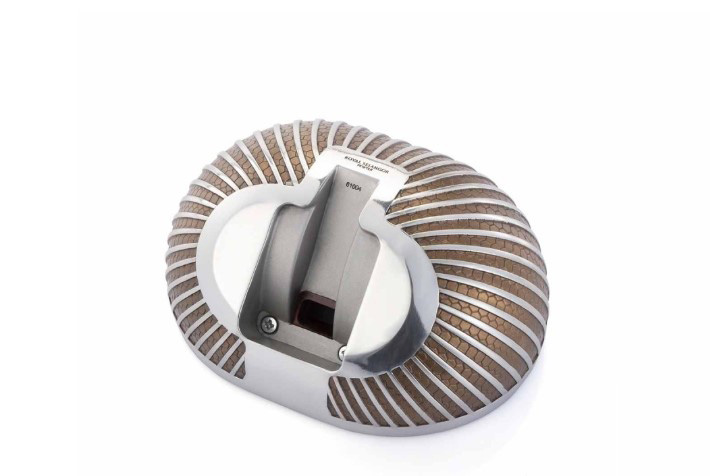 Around the sides, the Phonos’ exterior is adorned with a fine mesh pattern that varies depending on the size you choose. But across the different sizes, the pattern surrounding the Phonos resembles a radio grille or a speaker mesh.