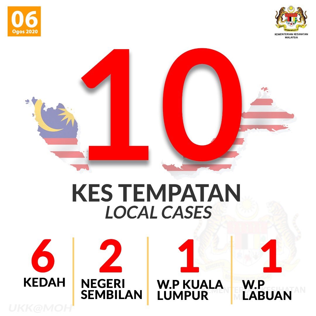 In terms of local cases, there are 6 Malaysians found positive from the Sivagangga cluster in Kedah, 1 Malaysian and 1 foreigner reported in Negeri Sembilan, a foreigner in Kuala Lumpur and a Malaysian in Labuan.