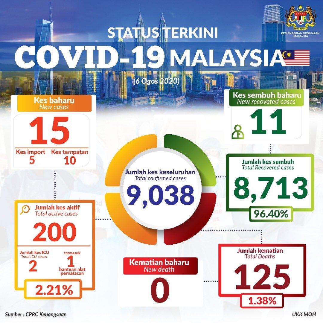 Out of the 15 cases reported today, 5 are imported while 10 are transmitted locally. The imported cases consist of 3 Malaysians and 1 foreigner returning from the Philippines and 1 foreigner arriving from South Africa.