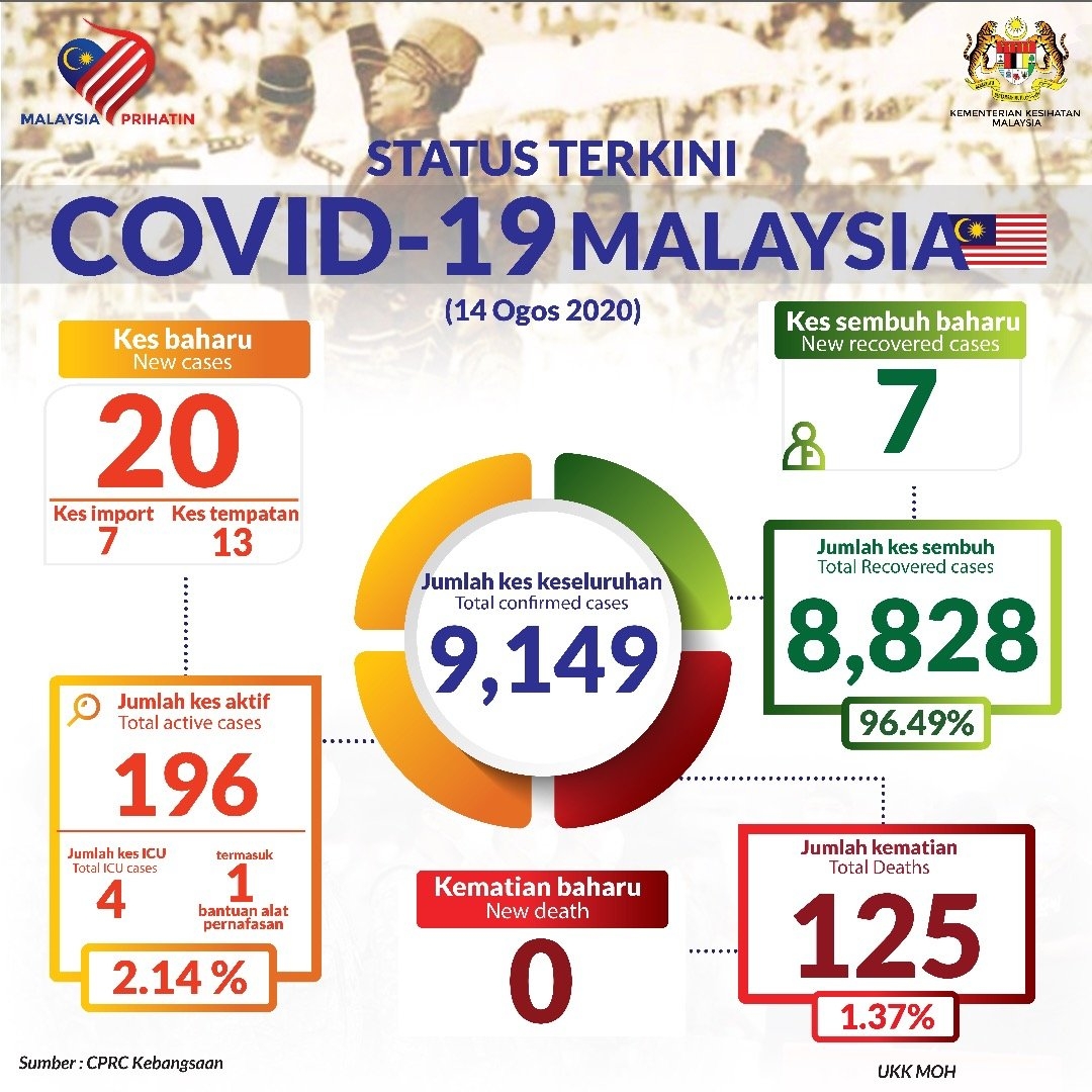 It is back to double-digit again as Malaysia records 20 new COVID-19 cases today. This brings the total number of positive cases to 9,149. Fortunately, there are no new deaths reported and the death toll remains at 125.