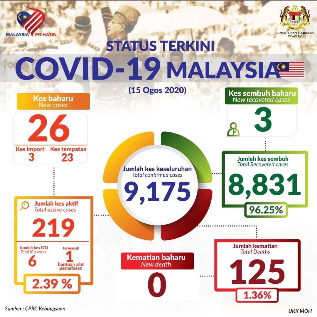Malaysia has recorded 26 new cases today which brings the total number of COVID-19 cases to 9,175. Fortunately there are no new deaths reported and the death toll remains at 125.