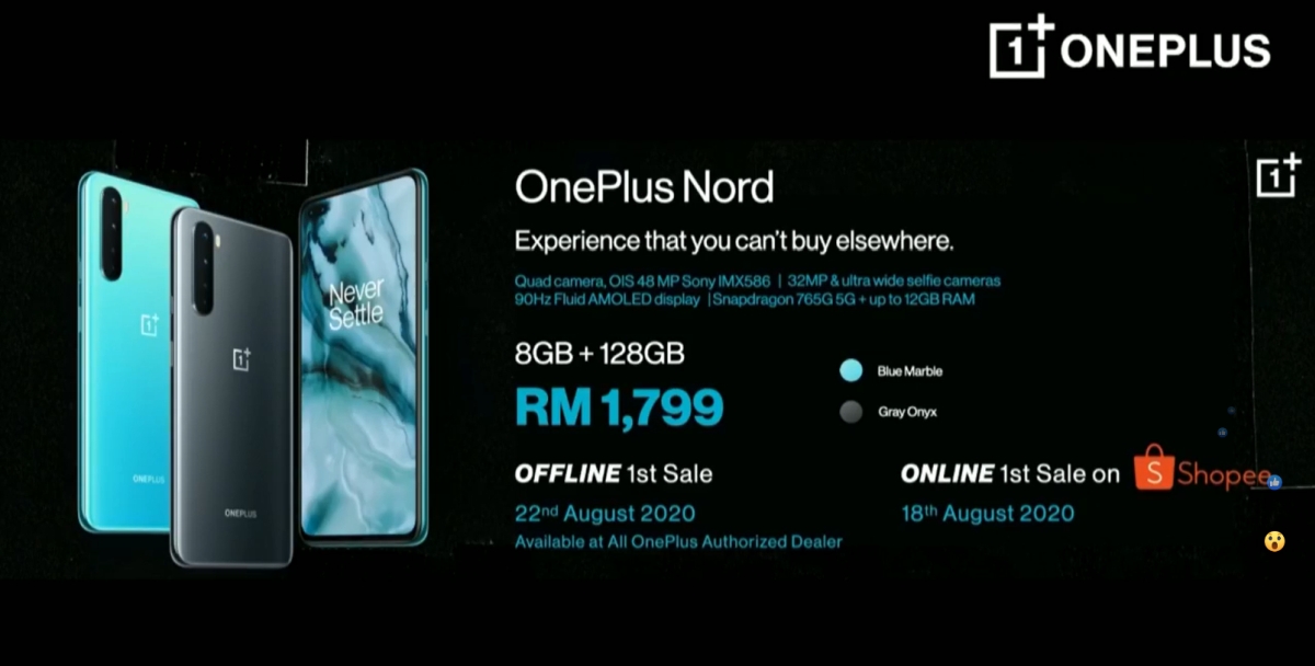 Two colour options are available: Blue Marble and Gray Onyx, along with RAM options of up to 12GB and storage of up to 256GB storage. Availability for the base model begins on the 18th of August 2020 (1pm, today) on Shopee, with offline sales to start on the 22nd of August 2020. As for the range-topping “Infinite Joy bundle”, you’ll have to wait for the 25th of August 2020 to purchase the range-topping OnePlus Nord (12GB+256GB) on Shopee, with the OnePlus Buds included as well.