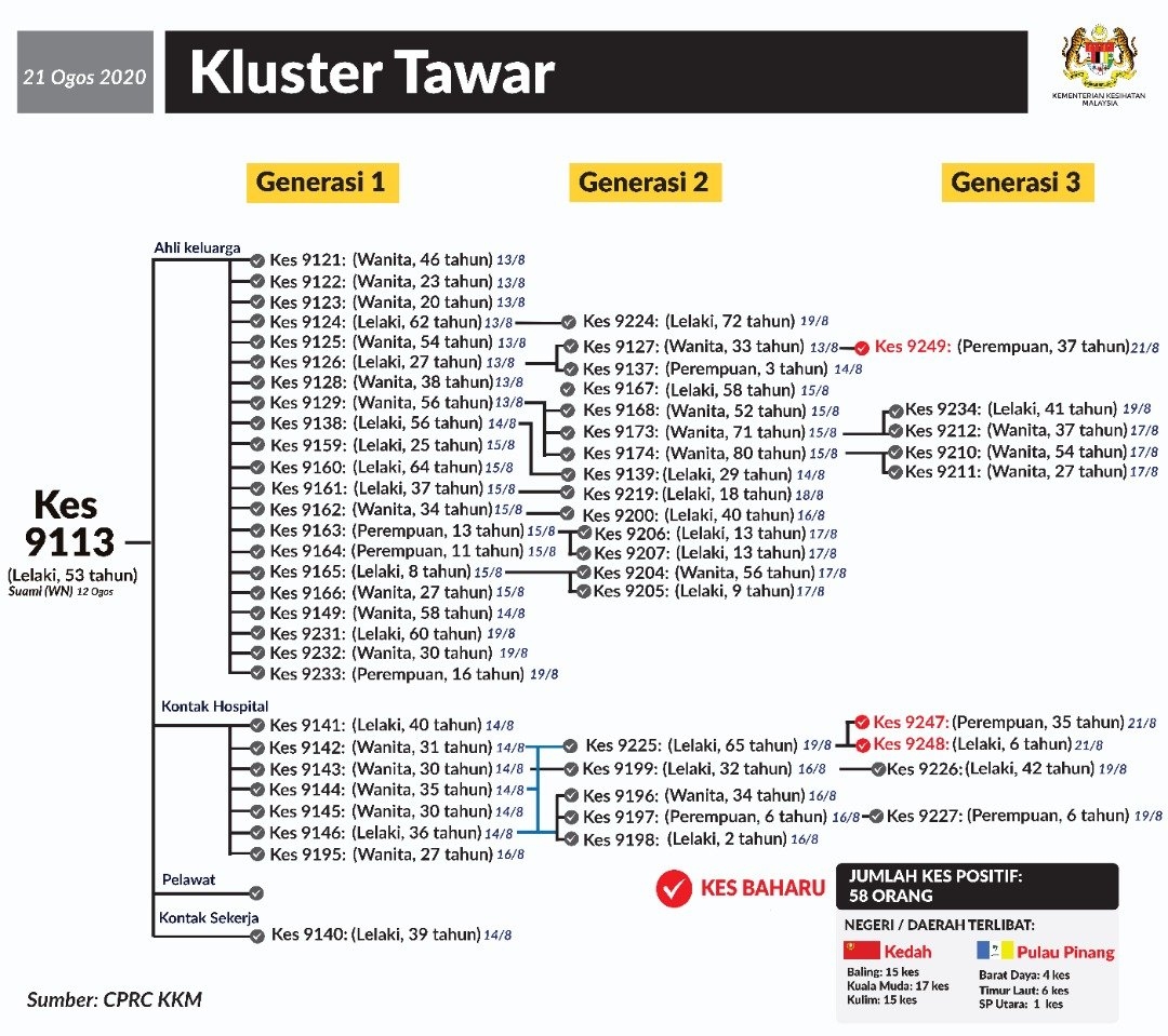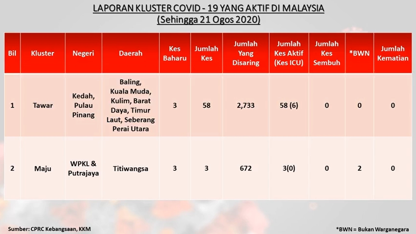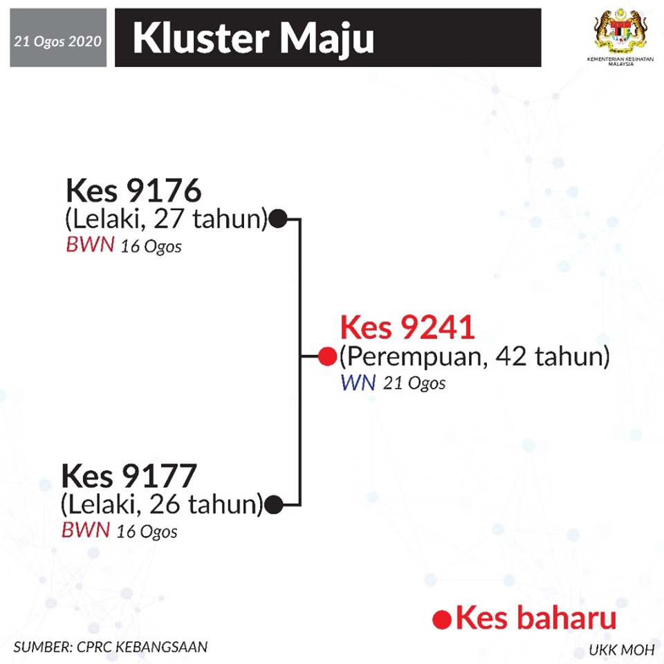 The Tawar cluster has accumulated a total of 58 positive cases while the Maju cluster has a total of 3 positive cases.