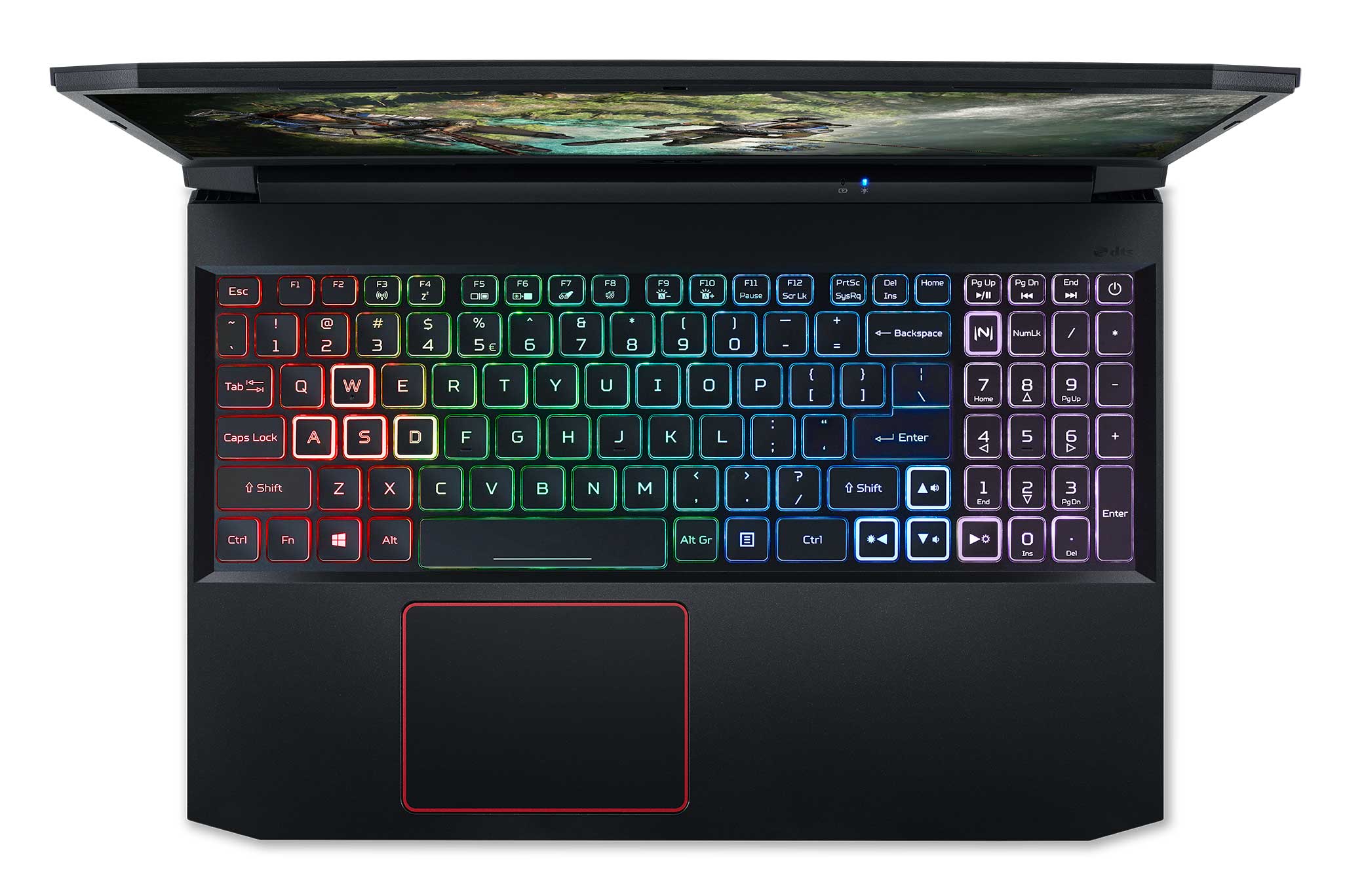 The Nitro 5 has a 4-zone RGB keyboard with highlighted WASD and arrow keys. You also get dual 2W speakers with DTS: X Ultra that is said to deliver cleaner sounds and better 3D spatial soundscape.