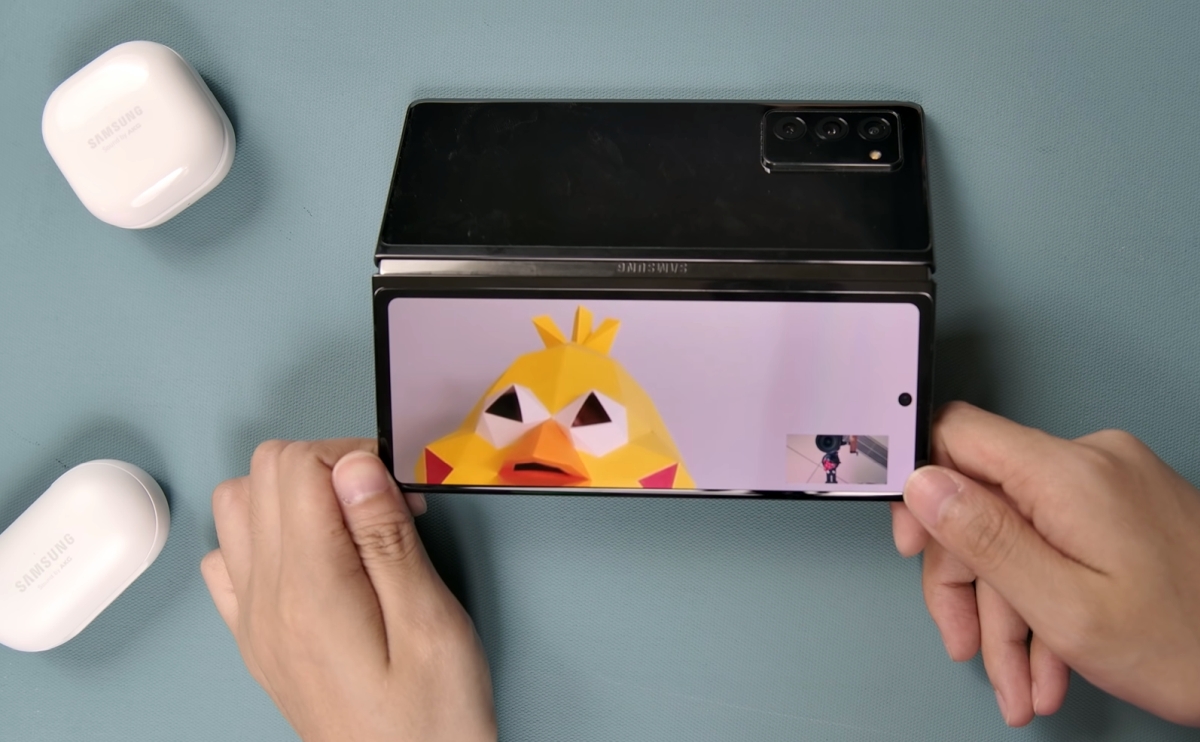 The Galaxy Z Fold 2 is more versatile than before thanks to its improved hinge. The Fold 2 can stay open in various angles and it offers several modes like a convertible laptop. You can stand it up to take selfies or you can vlog using the main cameras while using the front cover display as a large view finder.