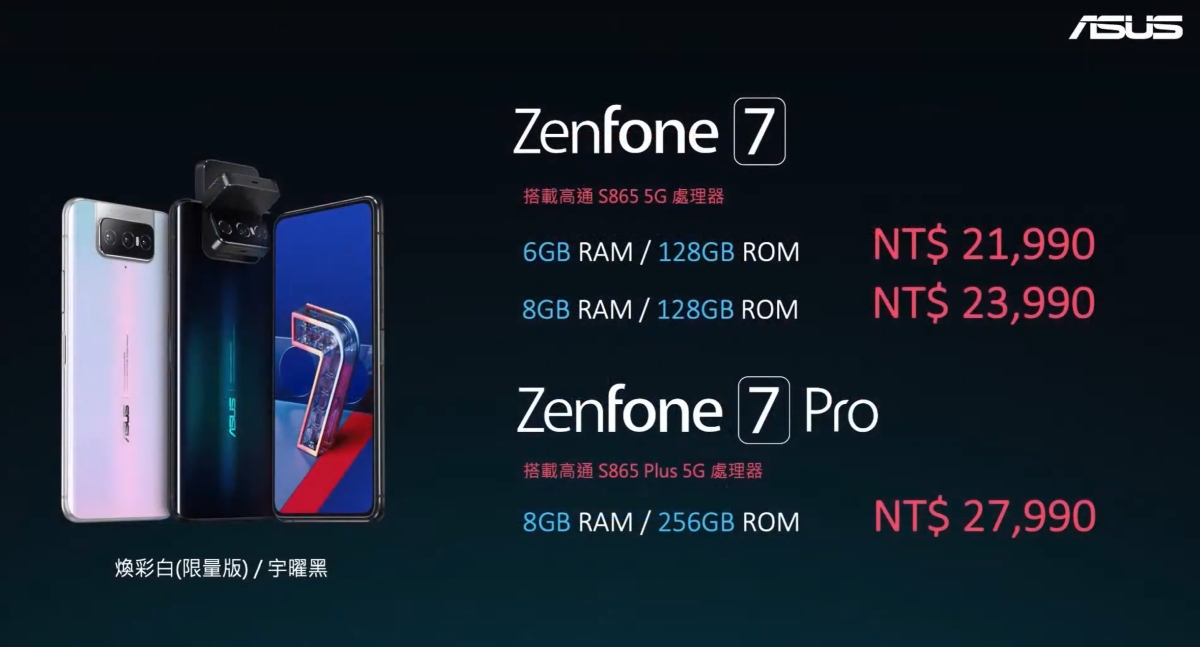 The ZenFone 7 series is now available in Taiwan and below is the official pricing: