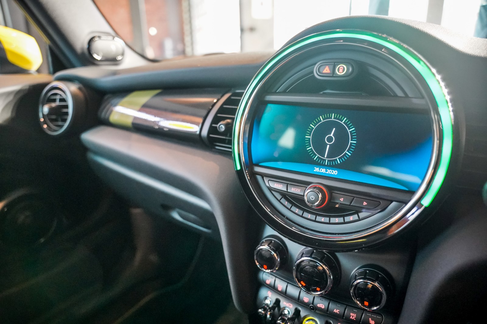 Stepping inside, you will find that the new three-door hatch has a new interior design language. This includes the Mini Electric Start/Stop button in yellow, velour floor mats and an electric selector lever with Electric design.