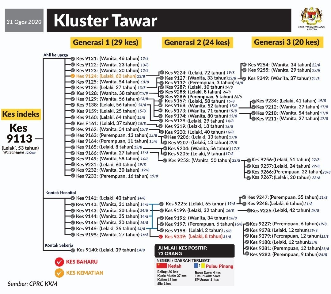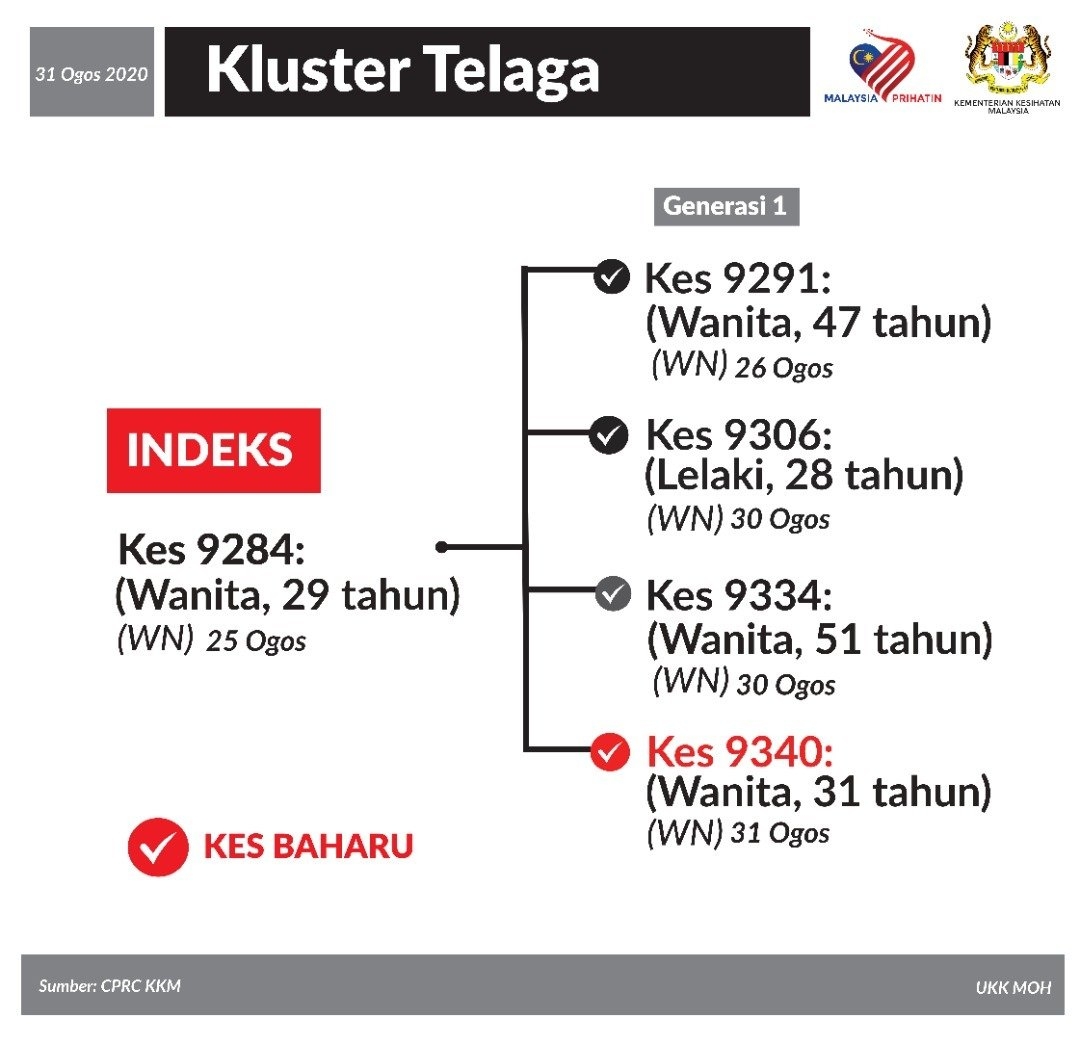 Meanwhile, the Telaga cluster currently has a total of 5 positive cases which include 2 other previously reported cases which are close contacts of the index case. A total of 735 individuals have been screened so far.