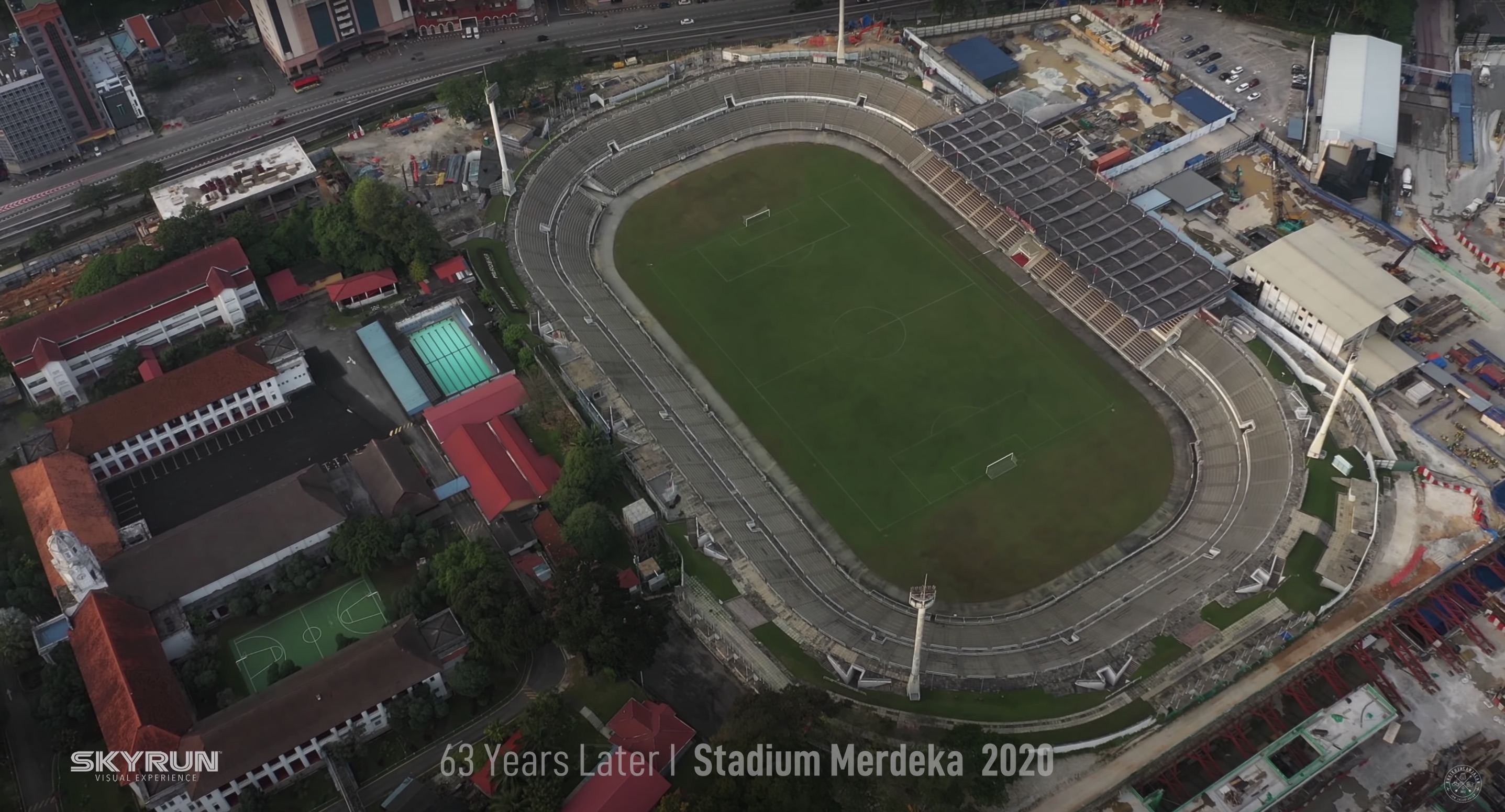 The 9 minute and 44 second video starts with some footage from the past—which includes our first Prime Minister Tuanku Abdul Rahman during the first Merdeka, and the visuals of Stadium Merdeka. The video then transitions to recent drone footage of the same stadium—63 years later.