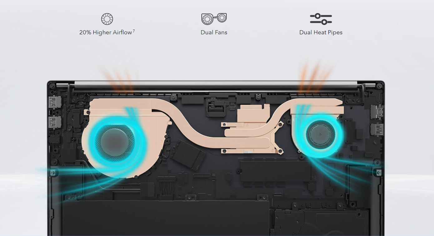 The laptop runs a 7nm AMD Ryzen 5 4600H chip that boasts 6-cores with 12 threads and integrated AMD Radeon graphics. It can be configured with up to 16GB of DDR4 RAM and up to 512GB of PCIe NVMe SSD. The MagicBook Pro also features dual fans and dual heat pipes designed to reduce heat dissipation for a sustained performance.
