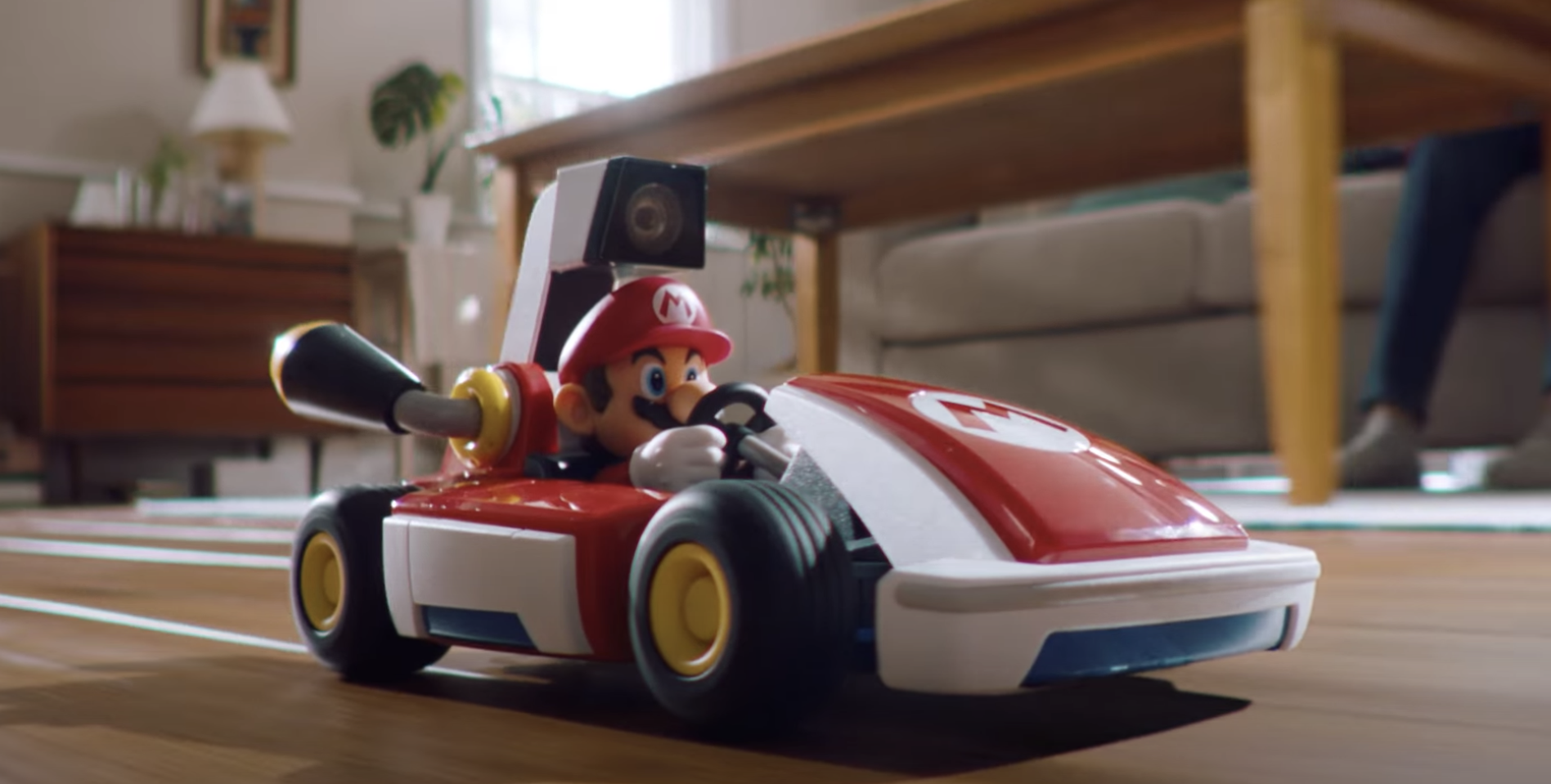 In the trailer, a kid plays Mario Kart Live: Home Circuit on his Nintendo Switch, while a toy version of Mario in his Kart racing by in the living room. The cars, along with a virtual racecourse, then appear on the Switch’s screen. The game brings together the classic game with augmented reality (AR).