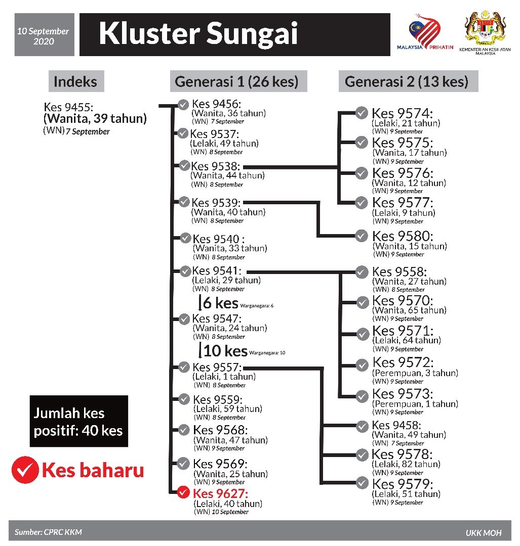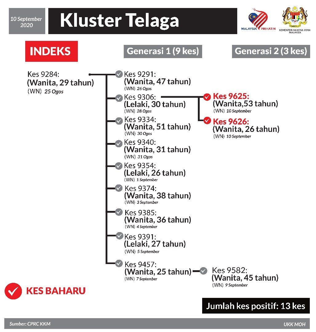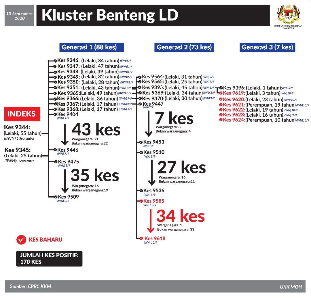 According to the Ministry of Health, the Benteng LD cluster has a total of 170 confirmed cases out of the 2,679 screened individuals. 1,593 are still waiting for their results. Meanwhile, the Telaga cluster has 13 positive cases out of the 4,673 screened individuals. 90 people from the cluster are still waiting for their results. The Sungai cluster has recorded a total of 40 positive cases. A total of 1,585 people have been screened and 482 are still awaiting results from the cluster.
