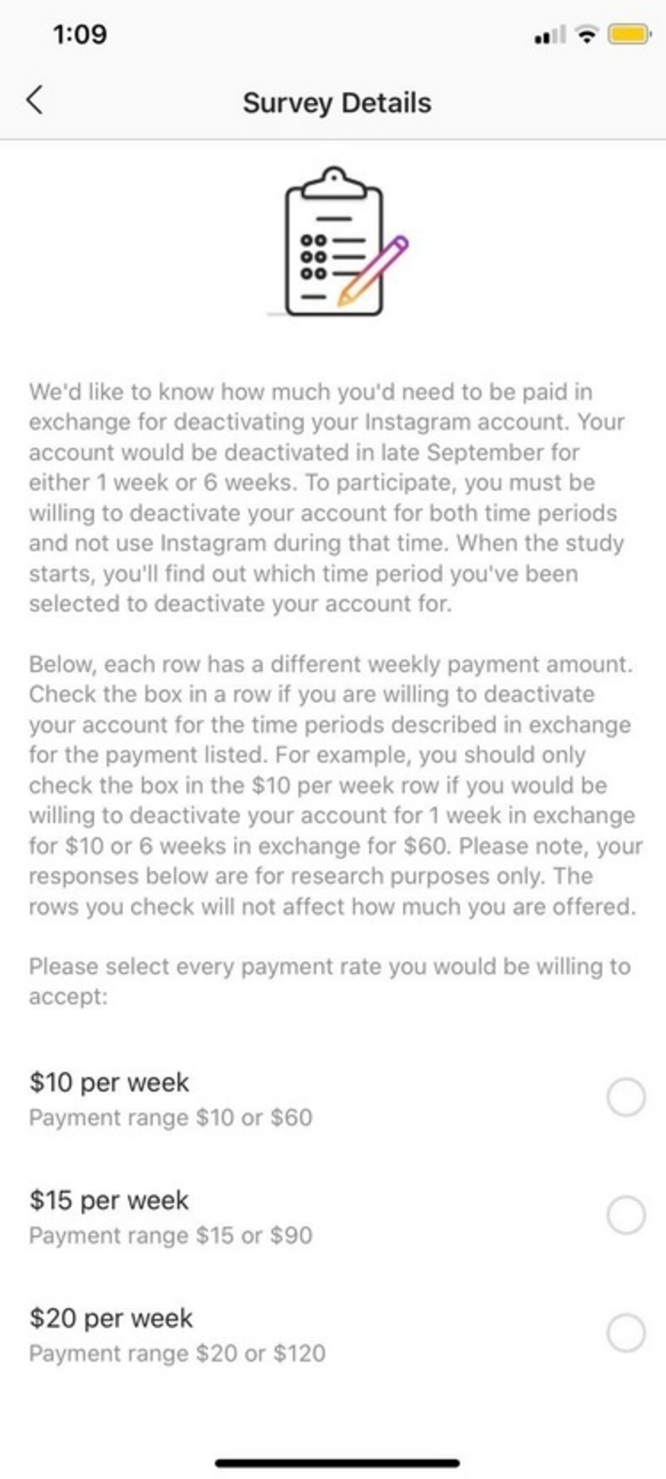Those lucky few chosen would be able to choose to take part in surveys, or to deactivate their Facebook or Instagram accounts for their chosen period of time. They will also be compensated for the study.