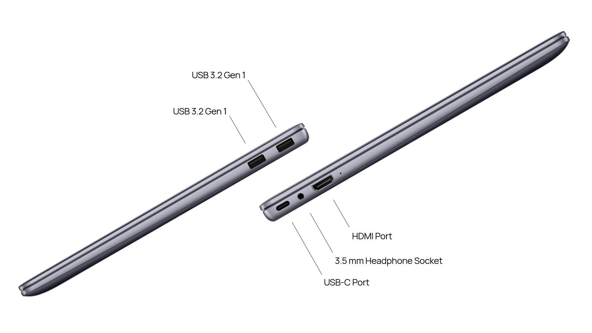 The new MateBook 14 sports an aluminium alloy body and is also thicker at 15.9mm and slightly heavier than the MateBook X, weighing approximately 1.49kg. One benefit of bigger is the laptop is able to accommodate a larger selection of ports with two USB-A ports, one HDMI port, one USB-C port and a 3.5mm headphone jack.