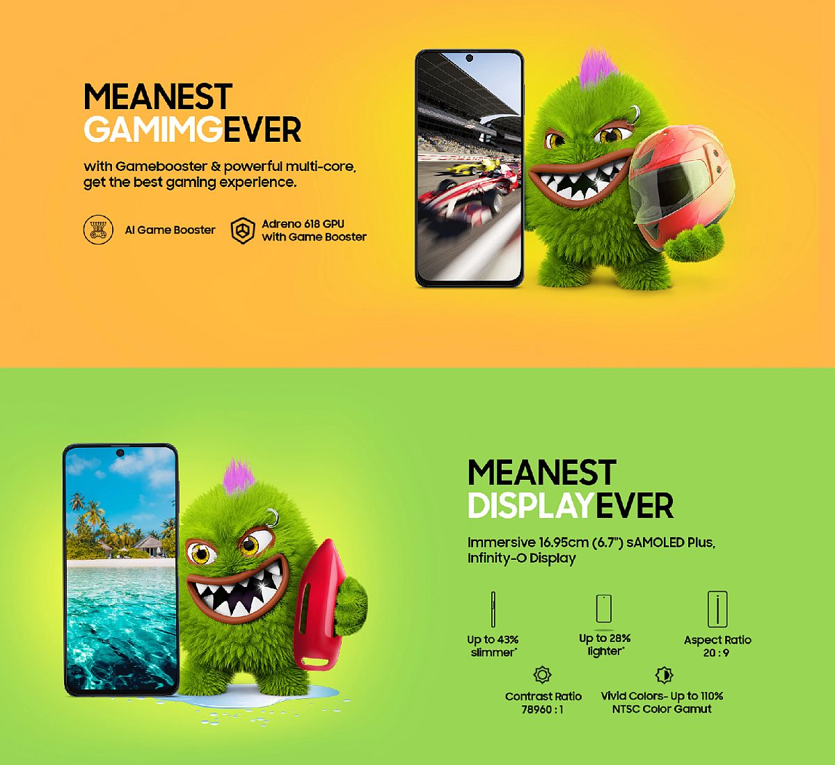 Under the hood, it runs on a Qualcomm Snapdragon 730G that can be configured with up to 8GB of LPDDR4x RAM. The device is offered only with 128GB of storage and you can expand it further with its dedicated microSD card slot.